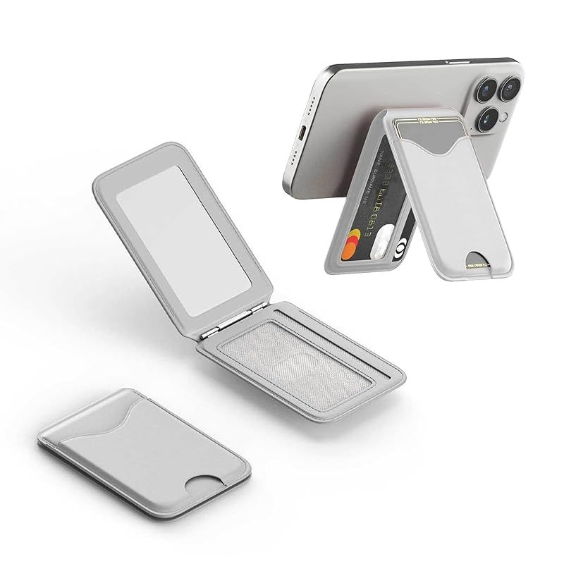 【新品】 Bingkeer Mag-Safe 対応 3in1 マグネットカードケース スタンド & ミラー付き 多角度調整 薄型 iPhone 17/16/15/14/13/12 シリーズ専用 グレー