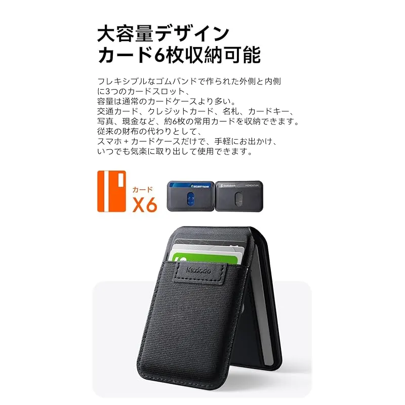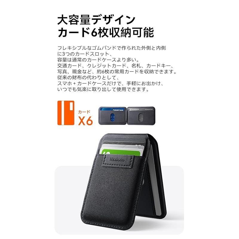 【新品】 Mcdodo Magsafe カードホルダー カードケース マグセーフウォレット 6枚収納 耐荷重15N 0-170°角度調節 超薄型 iPhone 17/16/15/14/13/12シリーズ & Android対応 メタルリング付き 軽量 コンパク