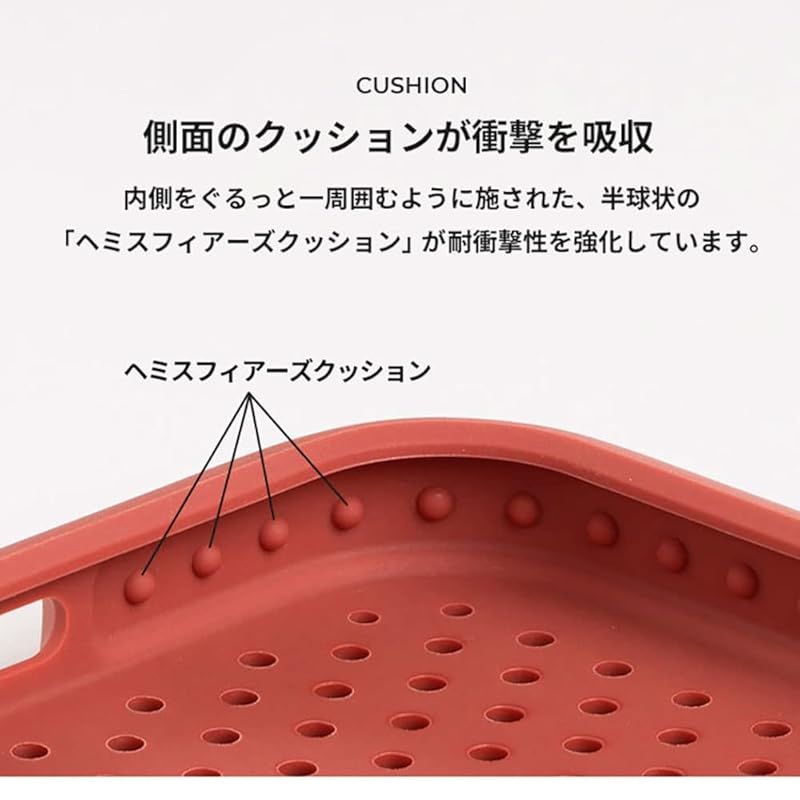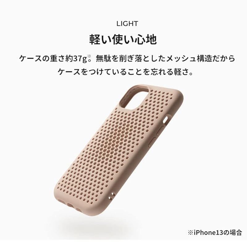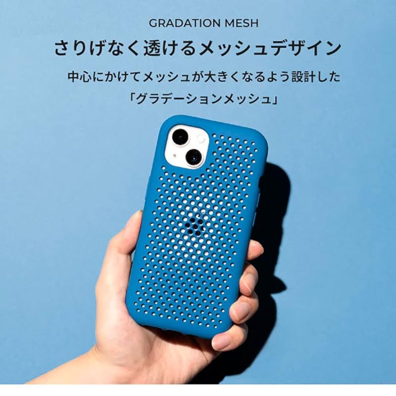 【商品説明】 更なる進化を遂げたiPhone 14シリーズ対応メッシュケース 軽さ・握り心地・耐衝撃性・放熱性などの合理的な機能性と、 少し遊び心の効いたメッシュデザインが、iPhoneをもっとあなたらしく仕上げる。 ・弾力性に優れたエラストマー(TPU)素材を採用し、クセになる握り心地を実現 ・アメリカ国防総省の軍事規格「MIL-STD-810G」に準拠 ・衝撃を緩和する「ヘミスフィアーズクッション」採用 ・メッシュ構造による軽量設計および放熱性 ・握った時に心地良い、ゆるやかなラウンド構造 ・ケース内側の設計改良による、各ボタンの軽やかな操作性 ・ストラップホール付き