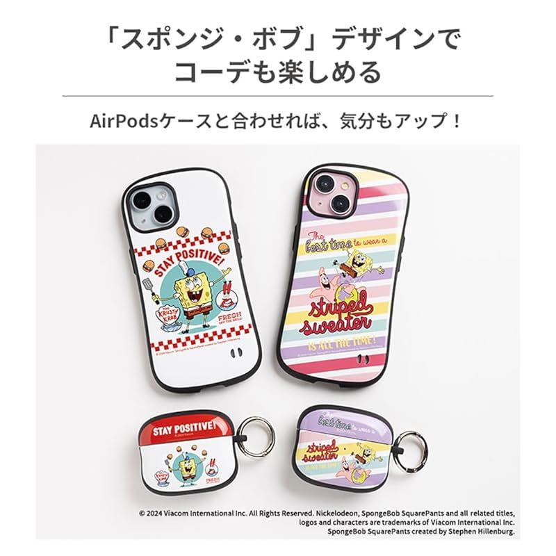 【商品概要】 iFaceから可愛い「スポンジ・ボブ」柄のスマートフォンケースが登場!「スポンジ・ボブ」と愉快な仲間たちが深い海の底にある海底都市ビキニタウンで繰り広げる、ユーモラスで楽しい日常を描いたハイテンション・アニメ。アニメから飛び出してきたような、無邪気で可愛い「スポンジ・ボブ」をポップにデザイン。持っているだけで「スポンジ・ボブ」のようにニッコリ!テンションがあがること間違いなし。 「くびれ」と「適度な厚み」で持ちやすい・ポリカーボネートとTPU、2つの素材で、傷や衝撃からiPhoneを保護・ストラップホール付き 対応機種:iPhone14(2022年秋発売モデル 6.1inch/2レンズ) 商品仕様 14用:約縦16.3×横8.2×厚1.3cm、重量約52g / 15・14・13用主素材:ポリカーボネート、TPU / ストラップ装着:可 / ワイヤレス充電:可 / :有