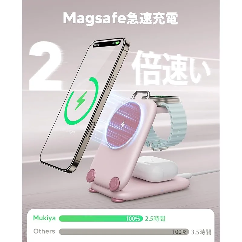 【新品】 Mukiya 3in1 ワイヤレス充電器 MagSafe充電器 折りたたみ式 3in1充電器