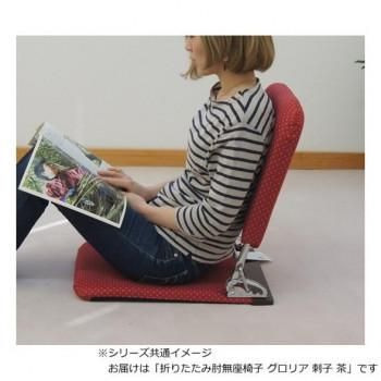 日本製 折りたたみ肘無座椅子 グロリア 刺子 茶 ブラウン 3段階リクライニング