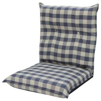 日本製 低反発ワイドハイバック座椅子 カントリーチェック ブルー フリーリクライニング