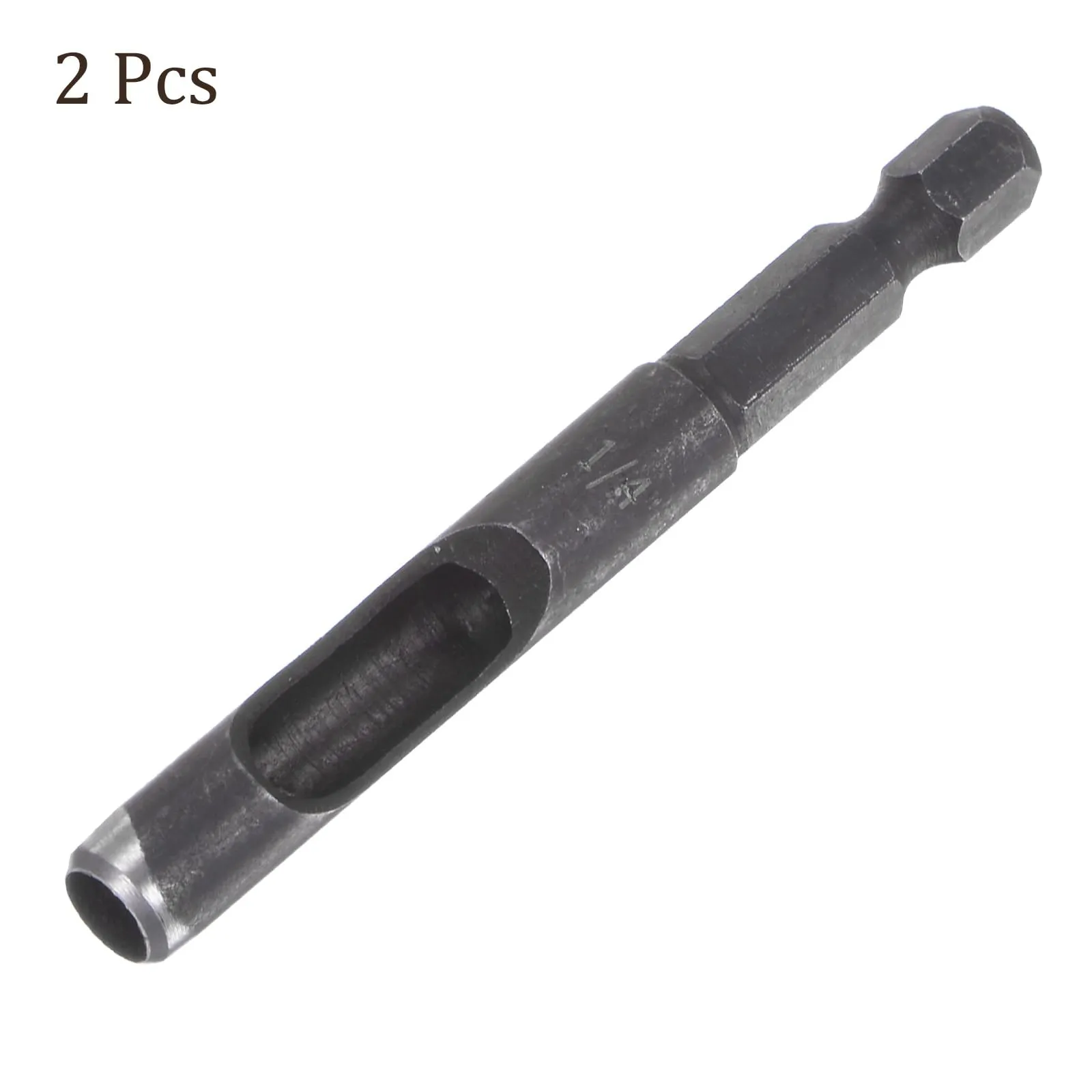 新品 Kozelo レザーホールパンチツール 2個 [1/4 x 1/4 シャンク] 延長六角シャンクドリルビット カーボンスチール中空パンチャー 布レザークラフトベルト用 長さ104mm