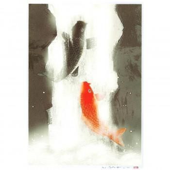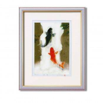 吉岡浩太郎 大衣開運風水額「夫婦滝昇り鯉」