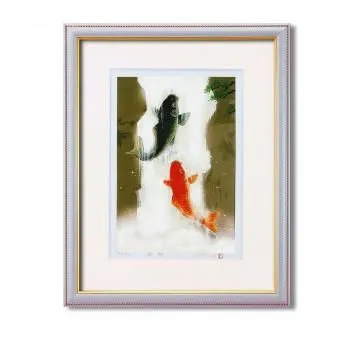商品名:吉岡浩太郎 大衣開運風水額「夫婦滝昇り鯉」