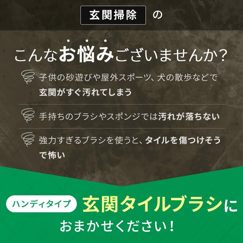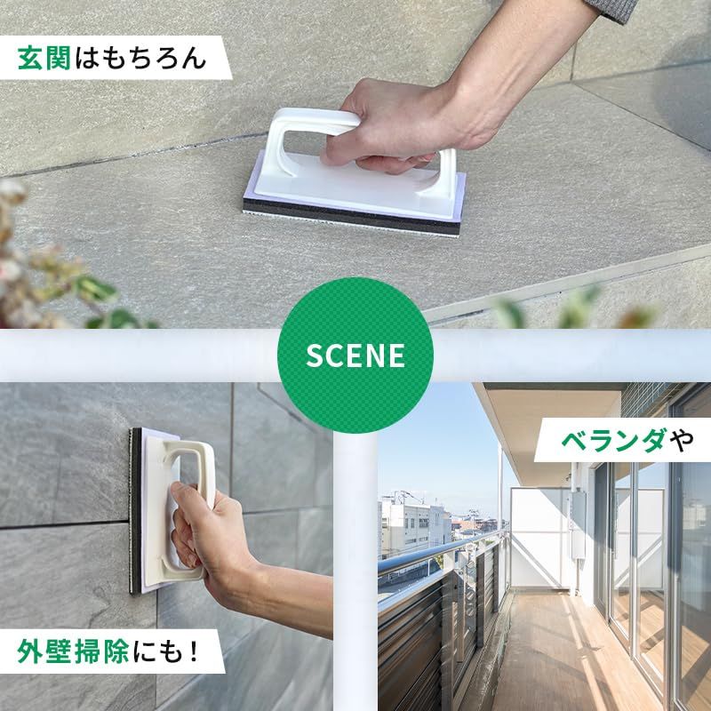 玄関タイル・外壁・コンクリートの汚れ・コケ・鳥のフン落としに。洗剤不要。水だけで汚れをスッキリ落とします。 スポンジが劣化したら、「SQA77玄関・外壁ブラシスポンジH交換SP」と交換できます。