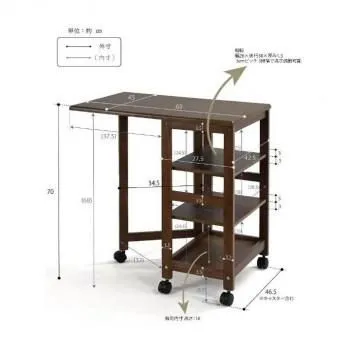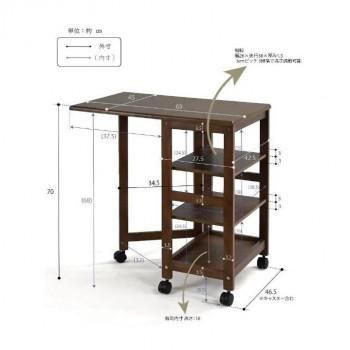 天板を折りたたんで、本体をコンパクトに収納できます。3枚の棚板を収納物に合わせて3段階で高さ調節ができる自由度の高い設計になっています。必要な時だけ天板をさっと広げて、広々作業スペースを確保できるので便利です。キッチン・ランドリー・書斎など、様々なシーンで活用できます。キャスター付きで移動しやすいです。