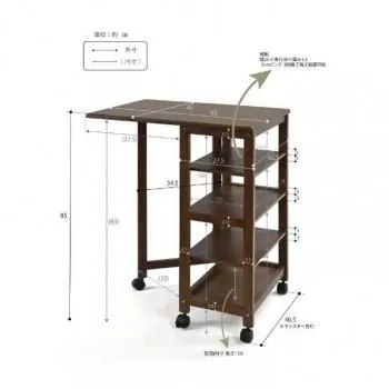 天板を折りたたんで、本体をコンパクトに収納できます。3枚の棚板を収納物に合わせて3段階で高さ調節ができる自由度の高い設計になっています。必要な時だけ天板をさっと広げて、広々作業スペースを確保できるので便利です。キッチン・ランドリー・書斎など、様々なシーンで活用できます。キャスター付きで移動しやすいです。
