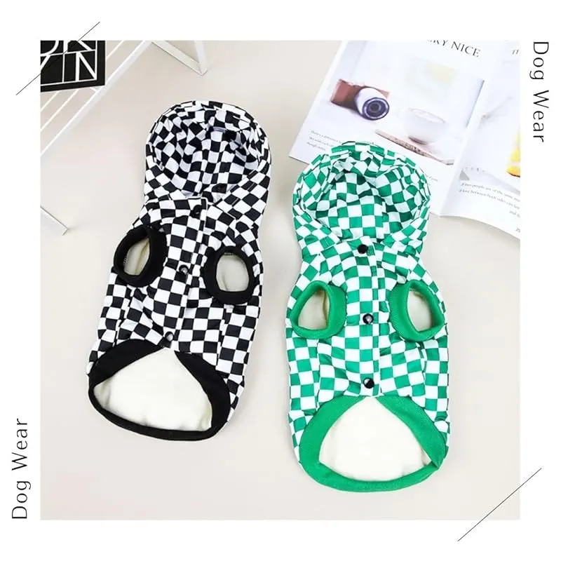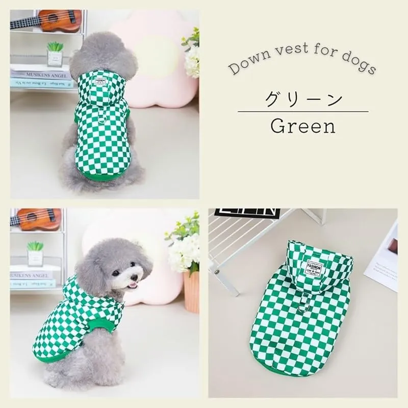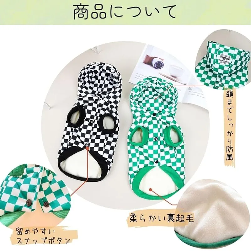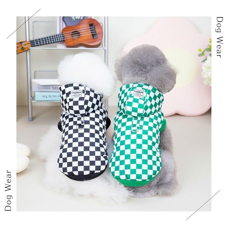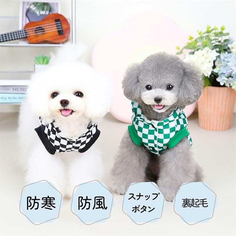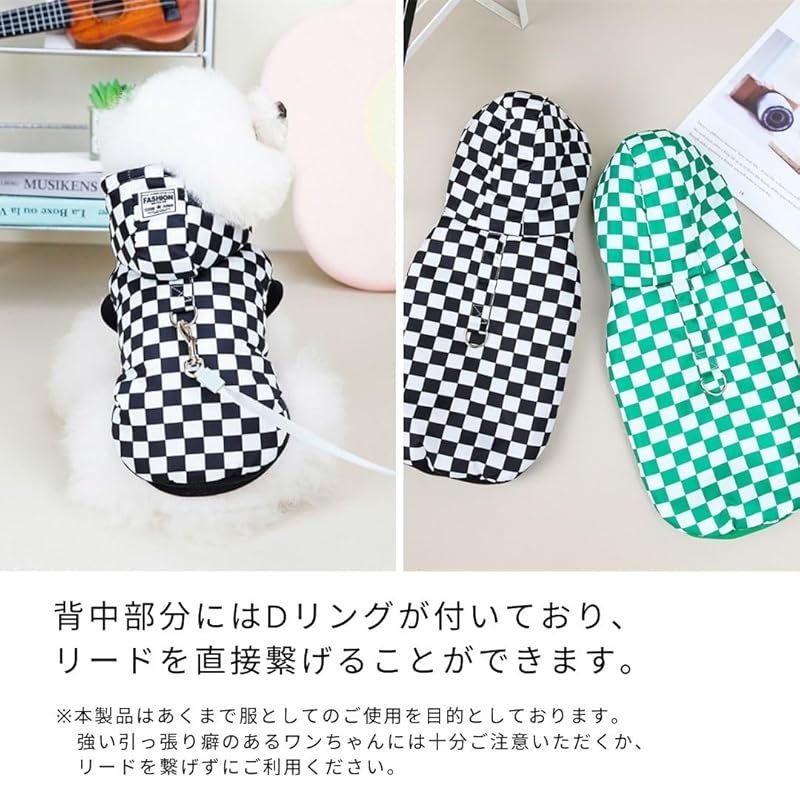 【商品概要】 タータンチェック柄のペット用の服です。犬、猫などの小動物用の服です。かわいいチェック柄やフード付きでかわいい犬服となっております。 お腹側がボタンタイプの服で着替えやすい服となっております。 背中側にはDカンが付いているのでお手持ちのリードと繋げる事によってハーネス代わりとしてお気軽にお散歩、ドッグランやドッグカフェなどにお出かけすることができます。 中綿入りで秋冬~春先の寒い日などにワンちゃんも防寒してお出かけできます。ベストで袖なしなのでお部屋でもワンちゃんが動きやすく部屋着としてもお使い頂けます。 サイズはS・M・Lの三種類、カラーはブラック・グリーンの二種類ございますので様々な犬種にご利用していただけます。 パピー チワワ トイプードル 柴犬 フレンチブルドッグ ポメラニアン ダックス ヨーキー パグ シーズーなど子犬や小型犬、中型犬などにおすすめです。