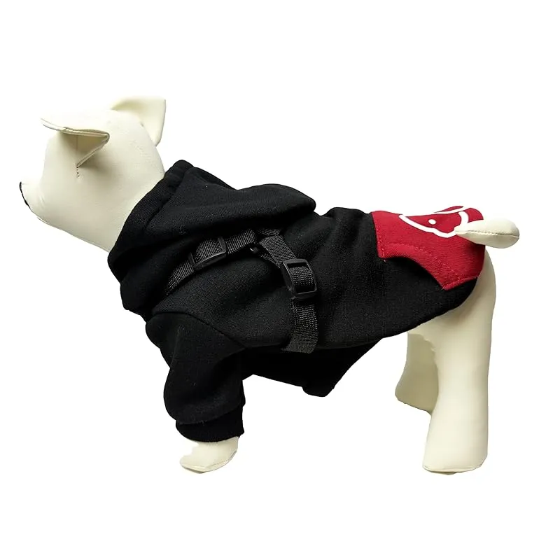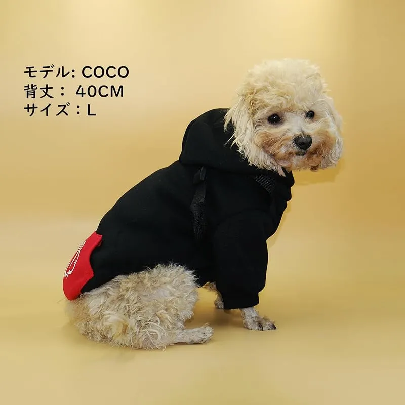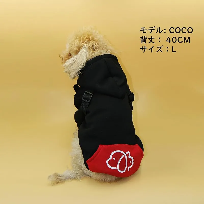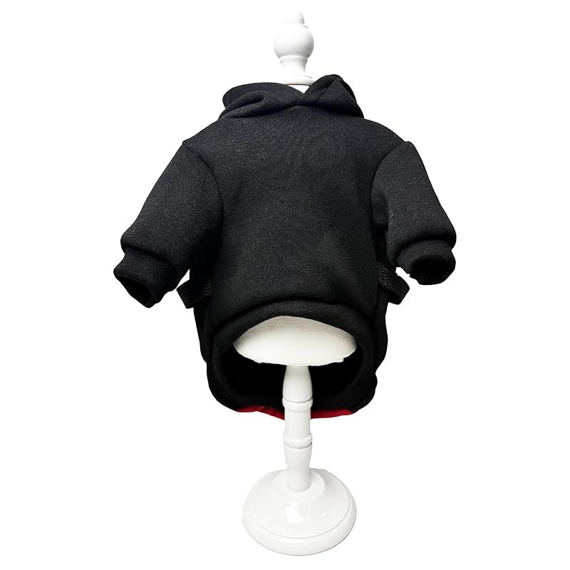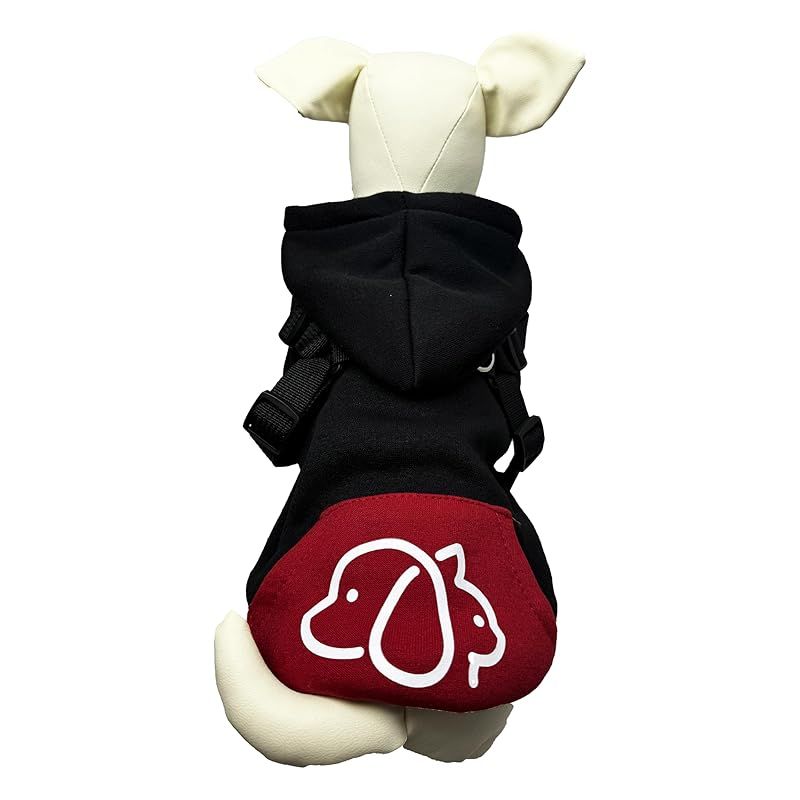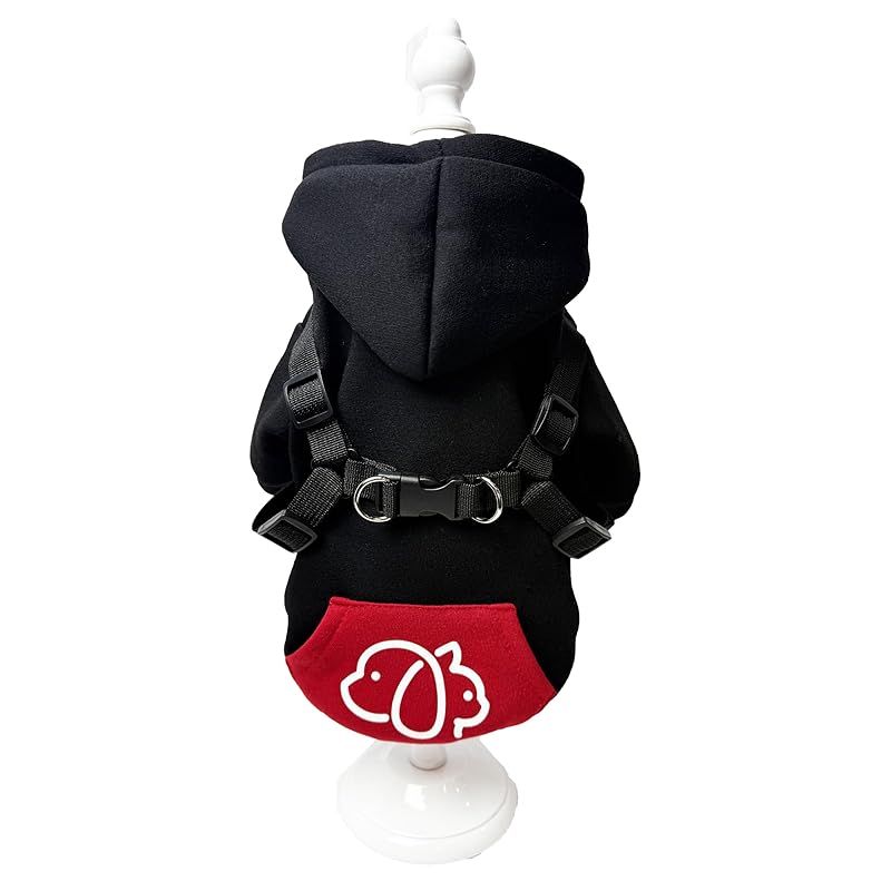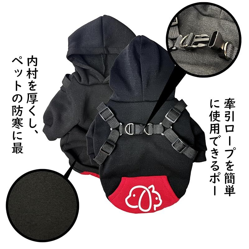 【新品】 Wag&Wink 犬服 猫服 パーカー ハーネス一体型 フード付き 犬用パーカー 秋冬 防寒 暖かい ドッグウェア 小型犬 中型犬 散歩用 着せやすい ペット服 (黒と赤, M) 1