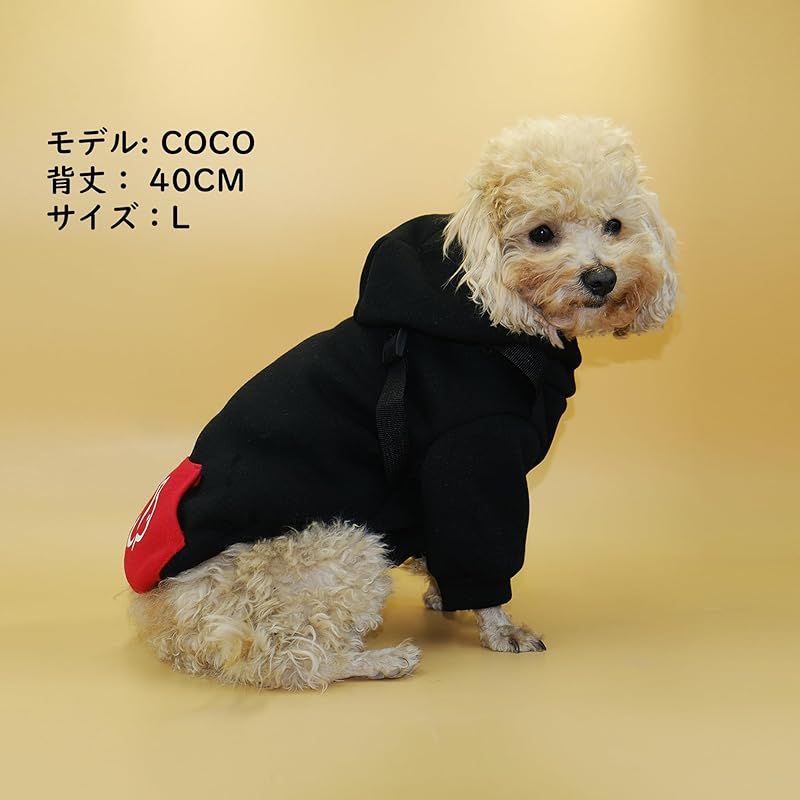 【商品概要】 ハーネス一体型|これ1枚でお散歩OK 背中にリード装着可能なハーネスベルト付き。 犬服とハーネスを別々に装着する必要がなく、着せるだけですぐにお散歩に出かけられます。 秋冬向けあったかパーカー 柔らかく保温性のあるスウェット素材を使用。 寒い季節のお散歩や室内での冷え対策に最適な犬用防寒パーカーです。 着せやすく、動きやすい設計 伸縮性のある生地とワンちゃんの体に沿った立体裁断で、 動きを妨げにくく、犬服が苦手な子にもおすすめ。 シンプルで可愛いデザイン フード付きのベーシックデザイン。 男の子・女の子を問わず着用でき、毎日使いしやすいドッグウェアです。 小型犬・中型犬・猫対応 チワワ、トイプードル、柴犬などに対応。 ご購入前に必ずサイズ表をご確認ください。