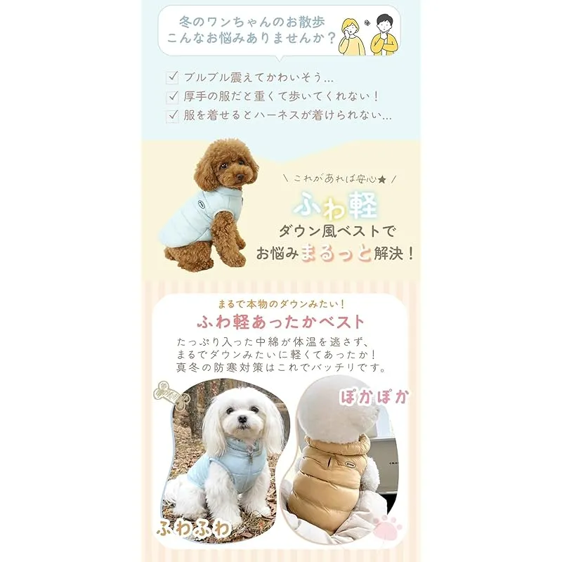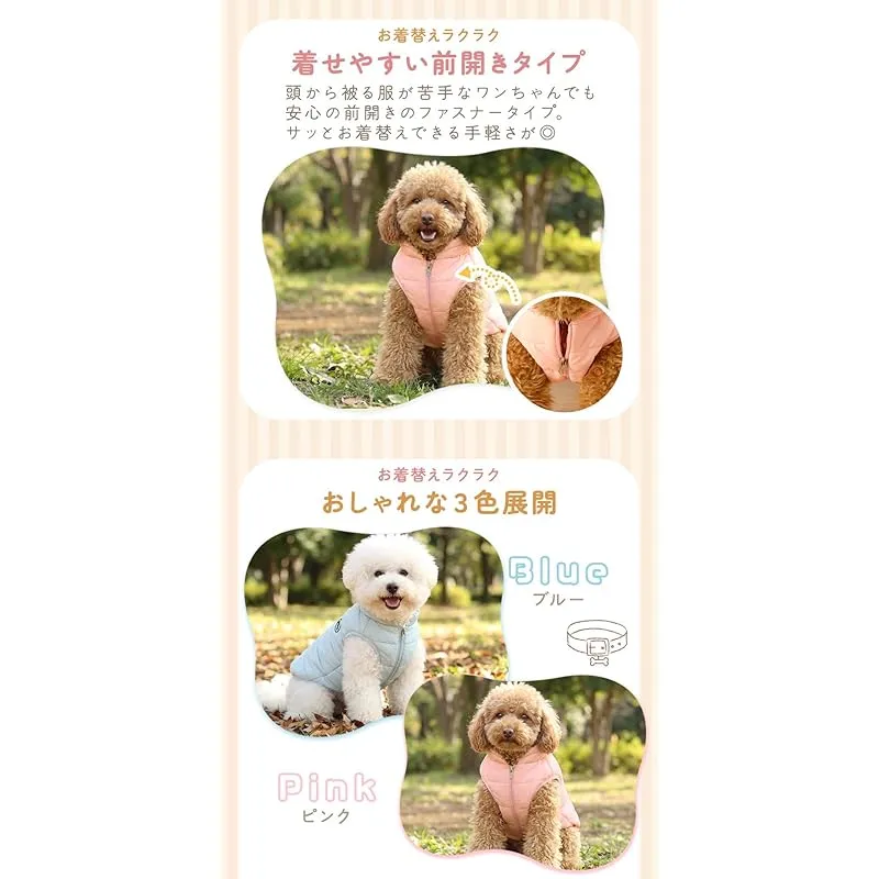 【新品】 MILASIC 犬用ダウン風ジャケット 冬 防寒 あったか 軽量 中綿 保温 撥水 ベスト 袖なし 前開き ファスナー 着せやすい リード穴 ハーネス対応 手洗いOK おしゃれ かわいい 散歩 アウトドア 秋冬 寒さ対策 防寒着 ドッグウェア ペ 1