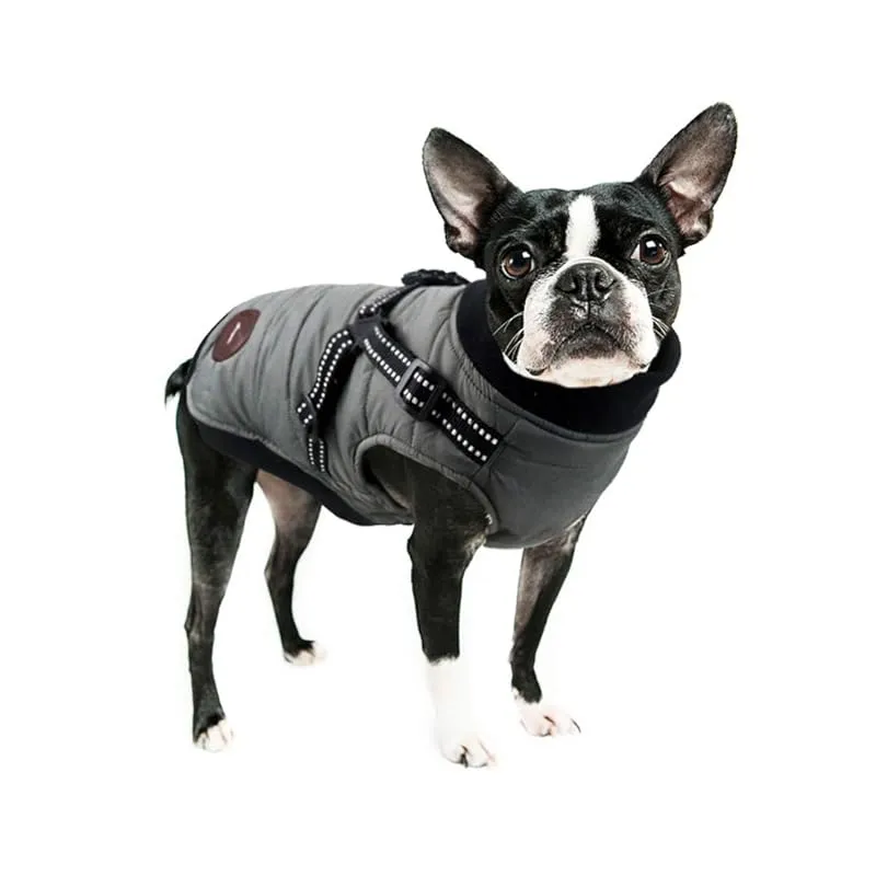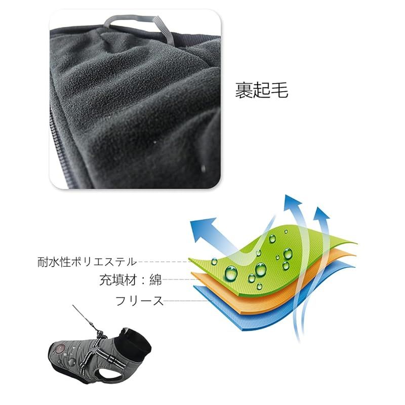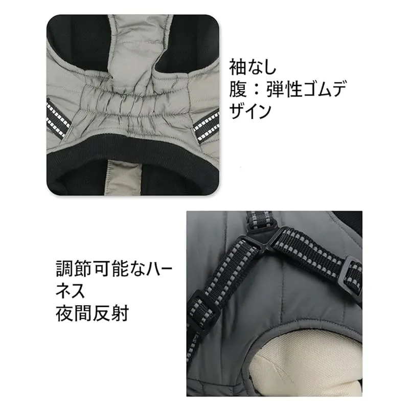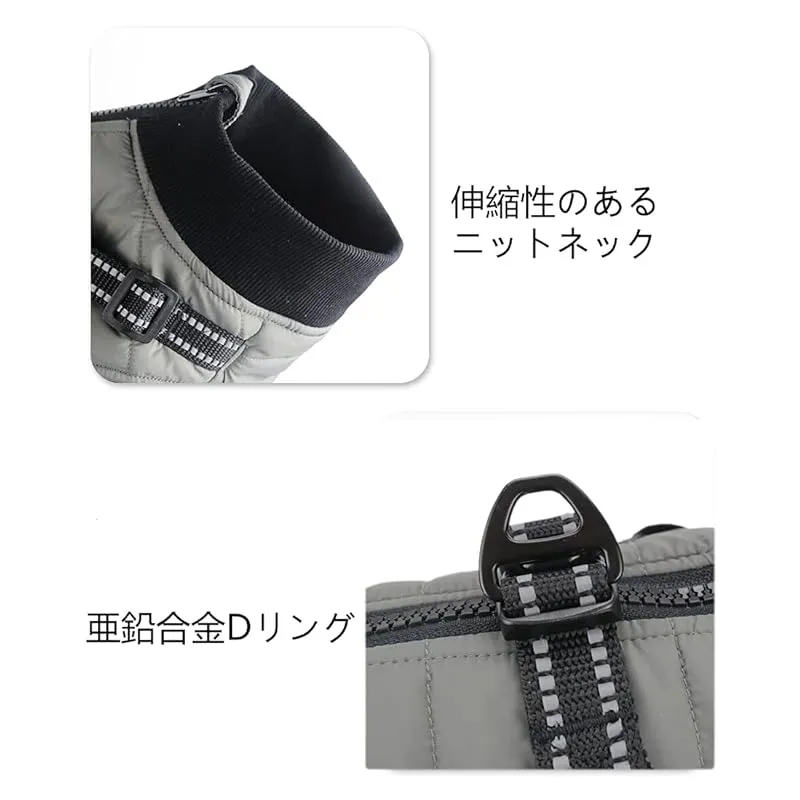 【ハーネス付き】ハーネス一体型ウィンターウォームコート。3Mの反射素材がナイロンウェビングに追加され、夜間に反射します。シームレス亜鉛合金Dリングは、耐久性があり壊れにくいハーネスと一緒に使用されます。各種リードに使用できます。 ?