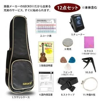 GECKO(ゲッコー)×アーバン通商 ウクレレ(充実の12点セット) 21インチ ソプラノ U21M NA