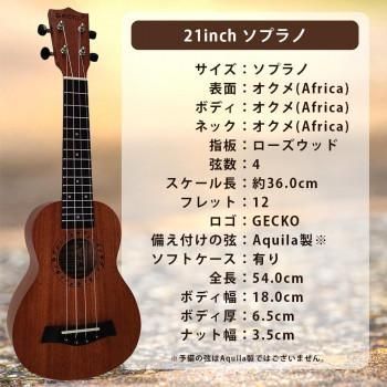 商品名:GECKO(ゲッコー)×アーバン通商 ウクレレ(充実の12点セット) 21インチ ソプラノ U21M NA