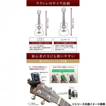 すぐにはじめられる充実したウクレレセットです。弦の張り方やチューニング(調律)の方法等が載っている取扱説明書付き。こだわりと誇りを持って一本一本を丁寧に作り上げ、愛される製品を皆様へ。