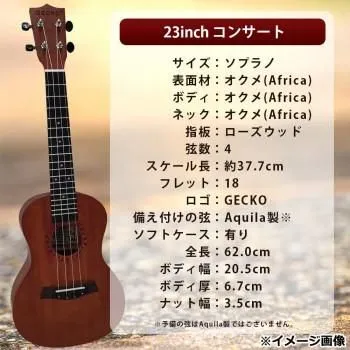 商品名:GECKO(ゲッコー)×アーバン通商 ウクレレ(充実の13点セット) 23インチ コンサート U23M NA
