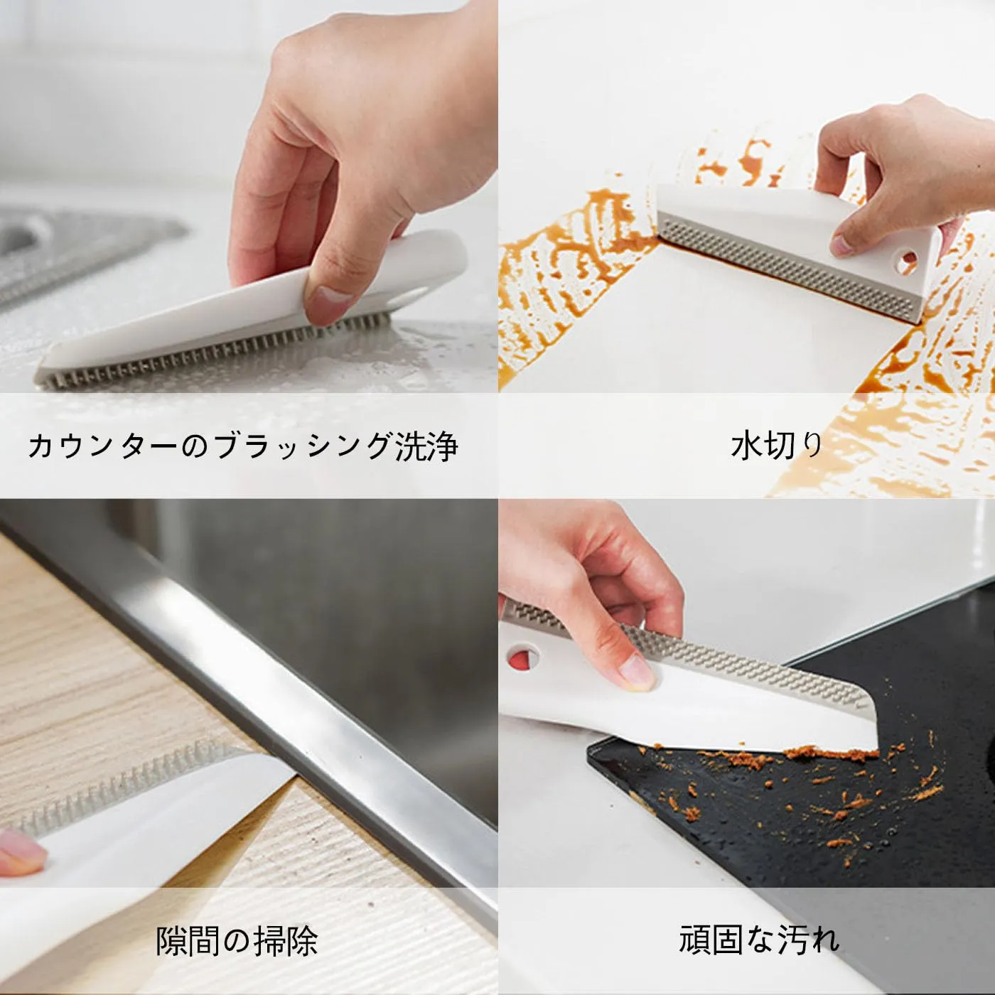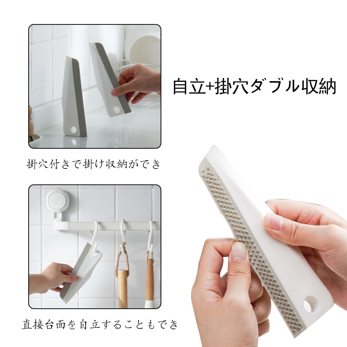 新品 HUIKKJP 自立式キッチンスキージー ホワイト ゴム水切りワイパー 多機能万能スクレーパー 調理台/浴室ガラス/ミラー用 掛け収納可能 持ち運び便利