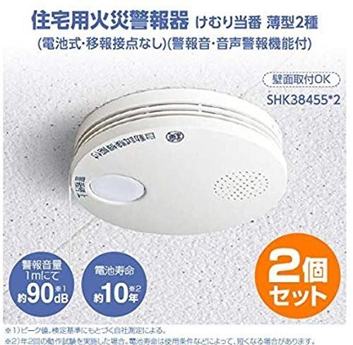 新品 パナソニック(Panasonic) 住宅用火災警報器 けむり当番 薄型2種 お得な2個セット(電池式・移報接点なし)(警報音・音声警報機能付) SHK38455*2 クールホワイト