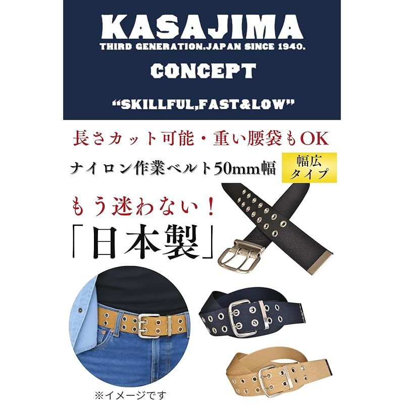 【新品】 [KASAJIMA(カサジマ)] 作業ベルト 幅50mm 全長約145cm 日本製 メンズ 大きいサイズ 作業 作業用 高強度 頑丈 ナイロン ダブルピン