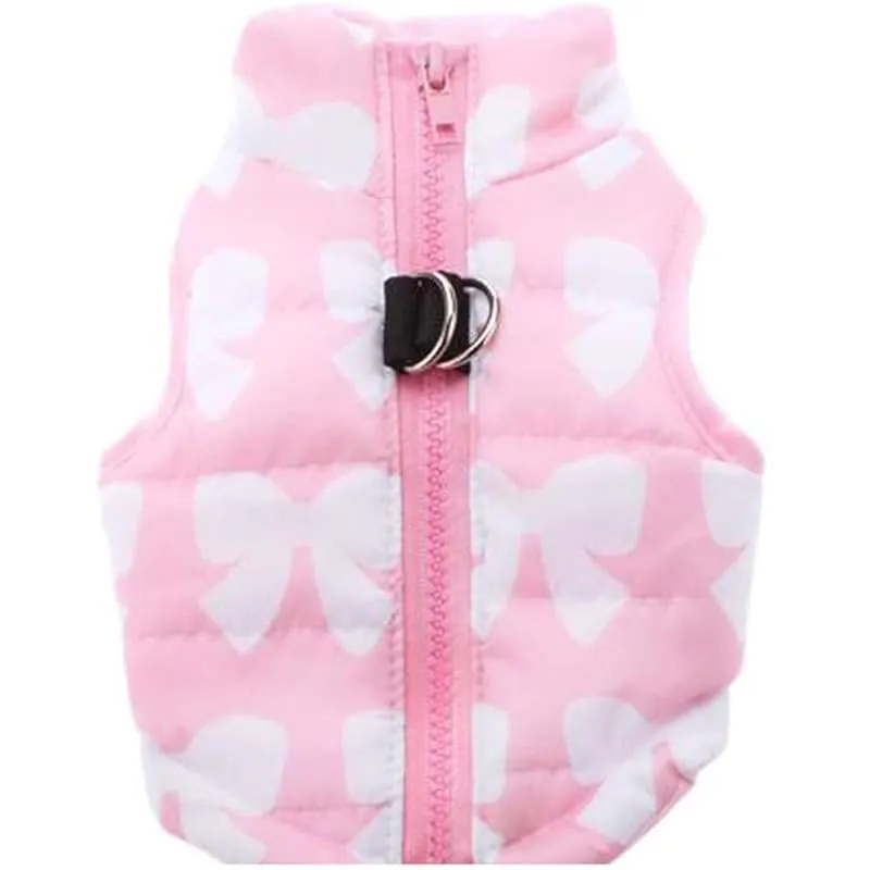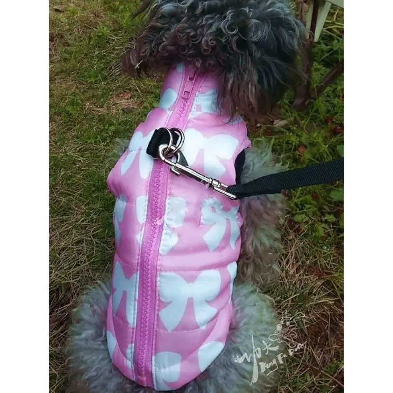【新品】 (マルペット)MaruPet 犬の 秋 冬服 犬洋服 パーカー 犬コート キルティング ベスト ハーネス リボン柄 ピンク