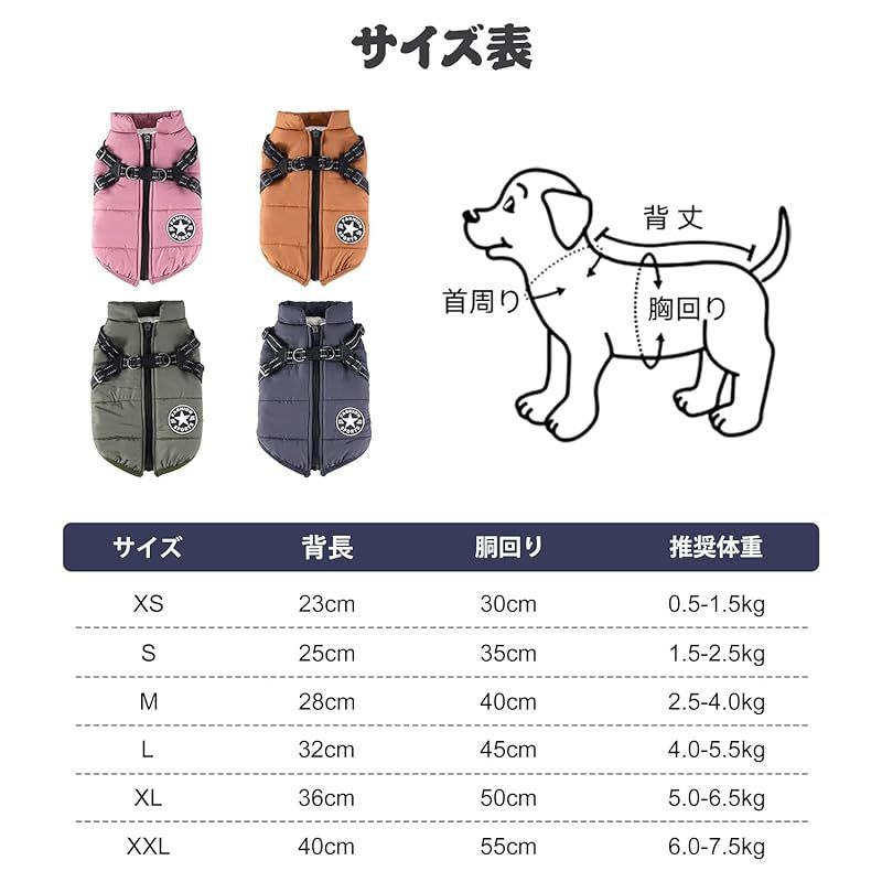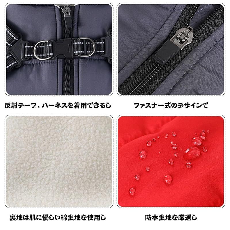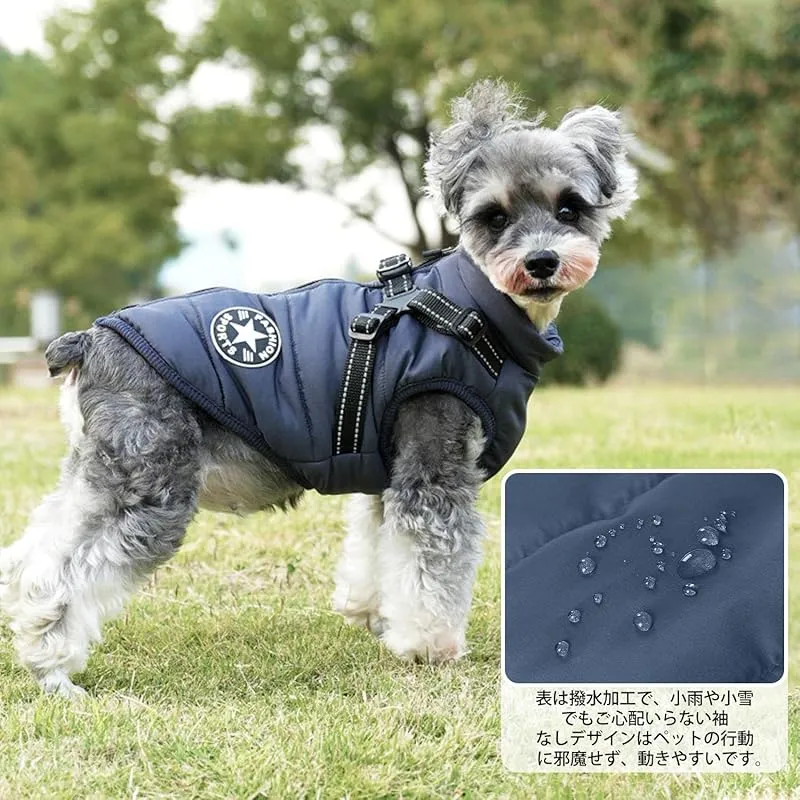 【新品】 Souher ペット服 冬服 ダウン風ジャケット ペット コート 犬服 防水防寒 裏ボアドッグウェア パーカー 袖なし小中型犬 洋服 ハーネス一体化 アウター 軽量 戸外運動 お散歩お出かけ