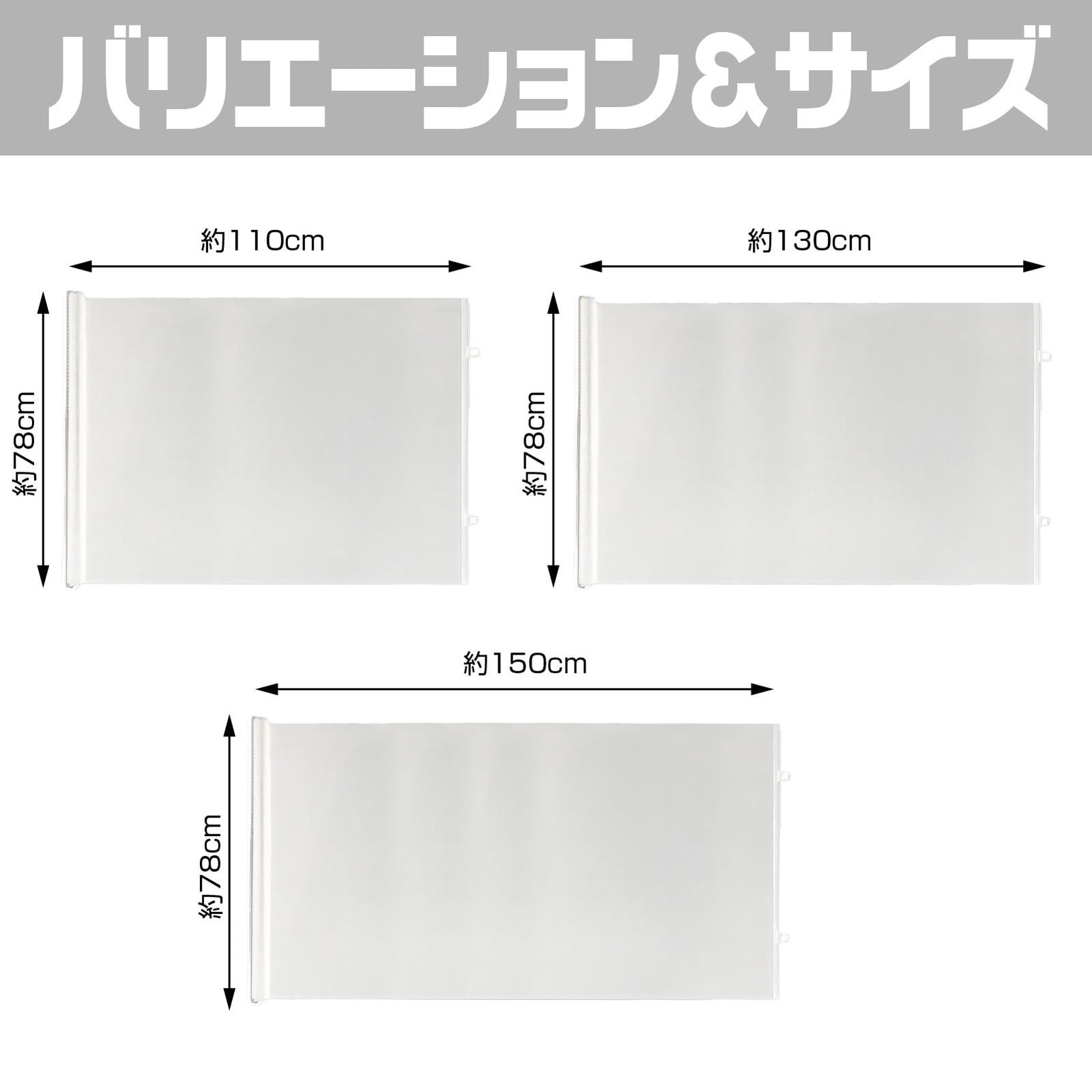 【巻き取り・伸縮式でスマート収納】使用しない時は、メッシュ布が自動で巻き取られ、本体がスリムに収納されます。開閉の手間がなく、場所を取らないため、人の通りが多い場所でも邪魔になりません。最大110cm130cm150cmまで伸縮可能で、広い間口にも対応します。