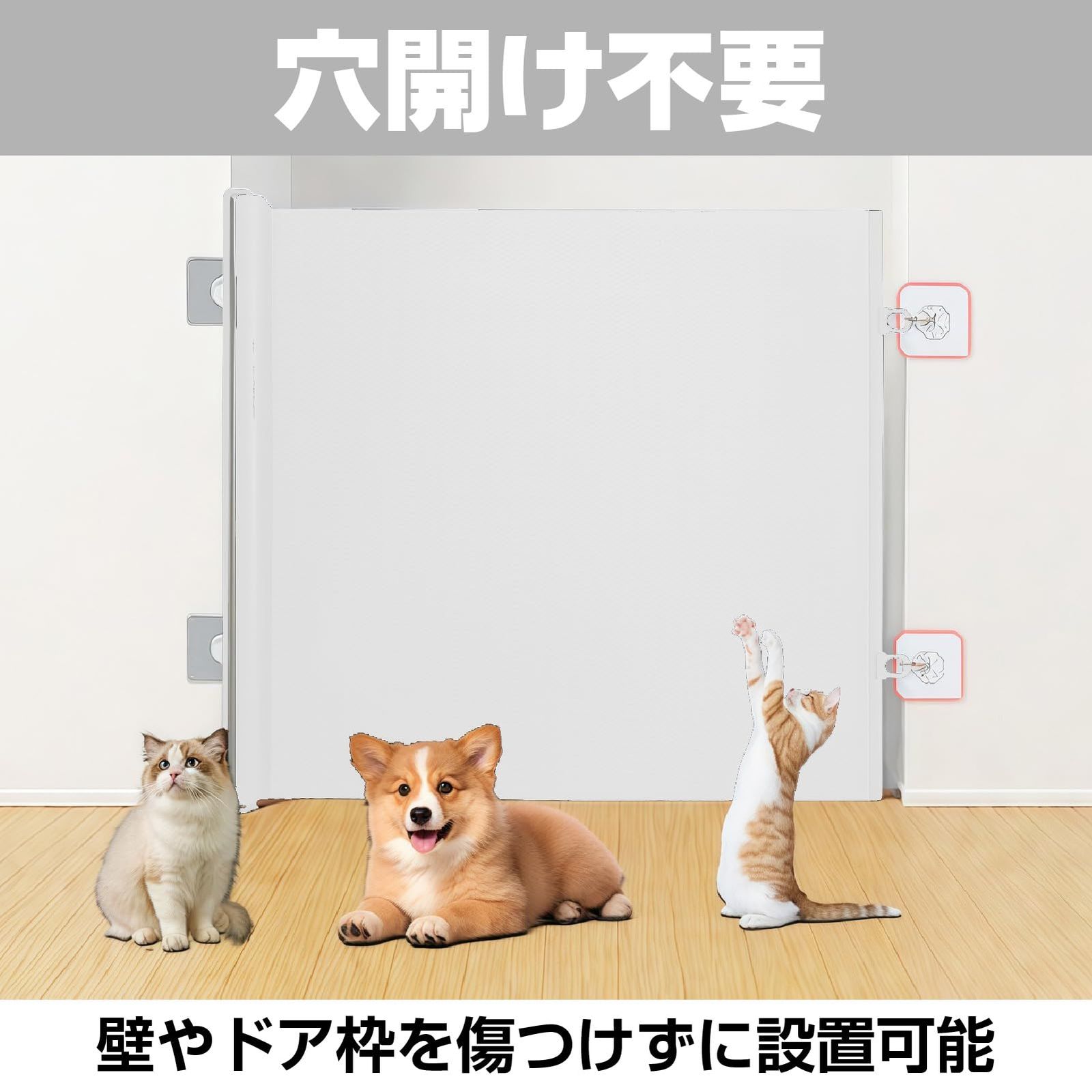 【商品特徴】ロール式ペットゲートは、工具や壁への穴あけが不要な自立・巻き取り式の多機能安全柵です。ペット(犬・猫)の立ち入り禁止エリア設定や、赤ちゃんの安全確保に役立ちます。使用しない時はコンパクトに収納でき、お部屋の景観を損ないません。壁にネジで固定する必要がないため、賃貸住宅でも安心して設置できます。付属の固定金具(具体的な設置方法に合わせて修正してください)で、玄関、台所、リビングなど、必要な場所に簡単に設置が可能です。