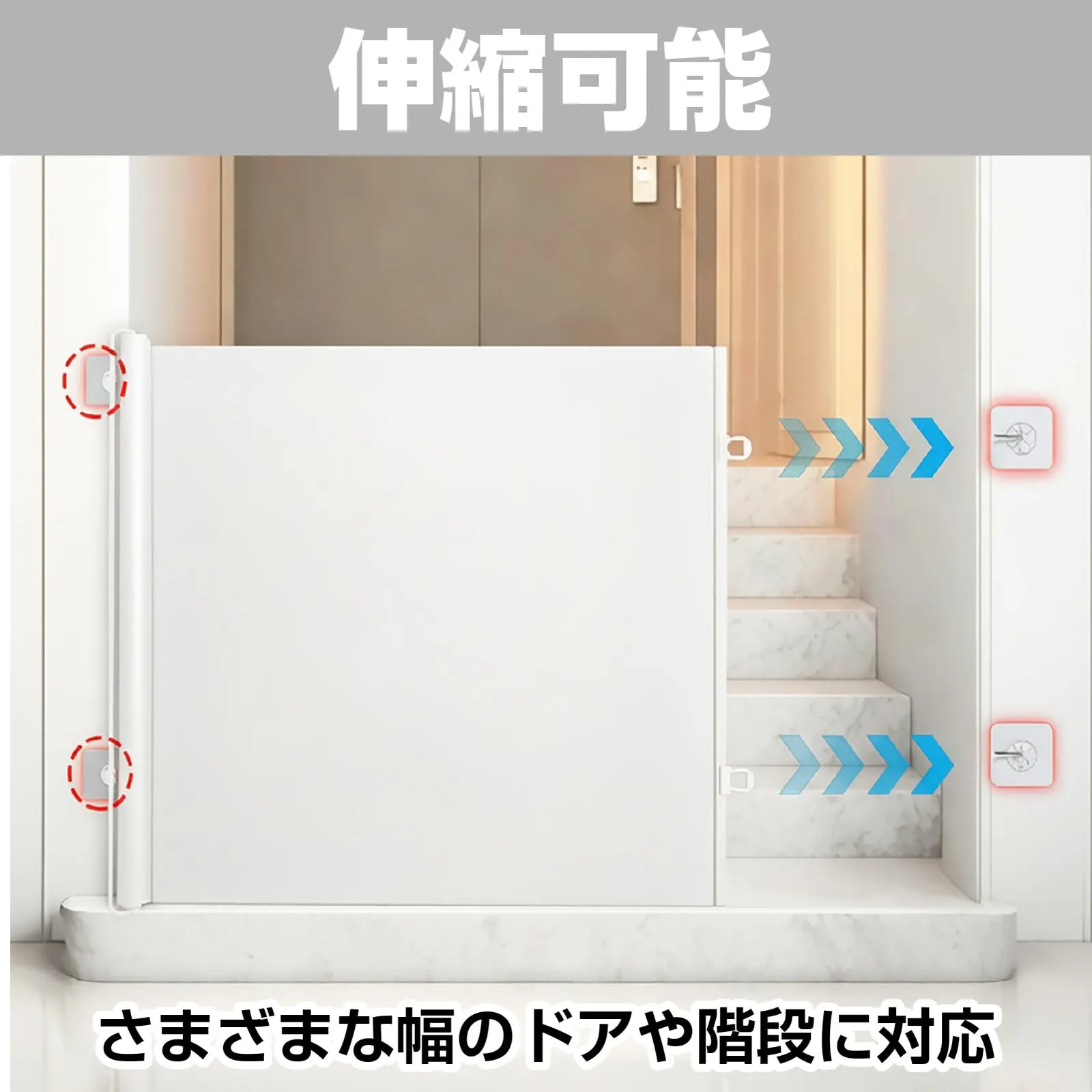 【犬・猫・赤ちゃんに安全な設計】 ペットガード:犬や猫が飛び越えにくい高さ(78cm)で、進入禁止エリアをしっかりと区切ります。 ベビーゲート:軽量でありながらもしっかりと仕切りとなり、危険なキッチンや階段への赤ちゃん(ベビー)の侵入を防ぎます。 メッシュ素材:軽量で視界を遮らないメッシュ布を採用し、圧迫感がありません。