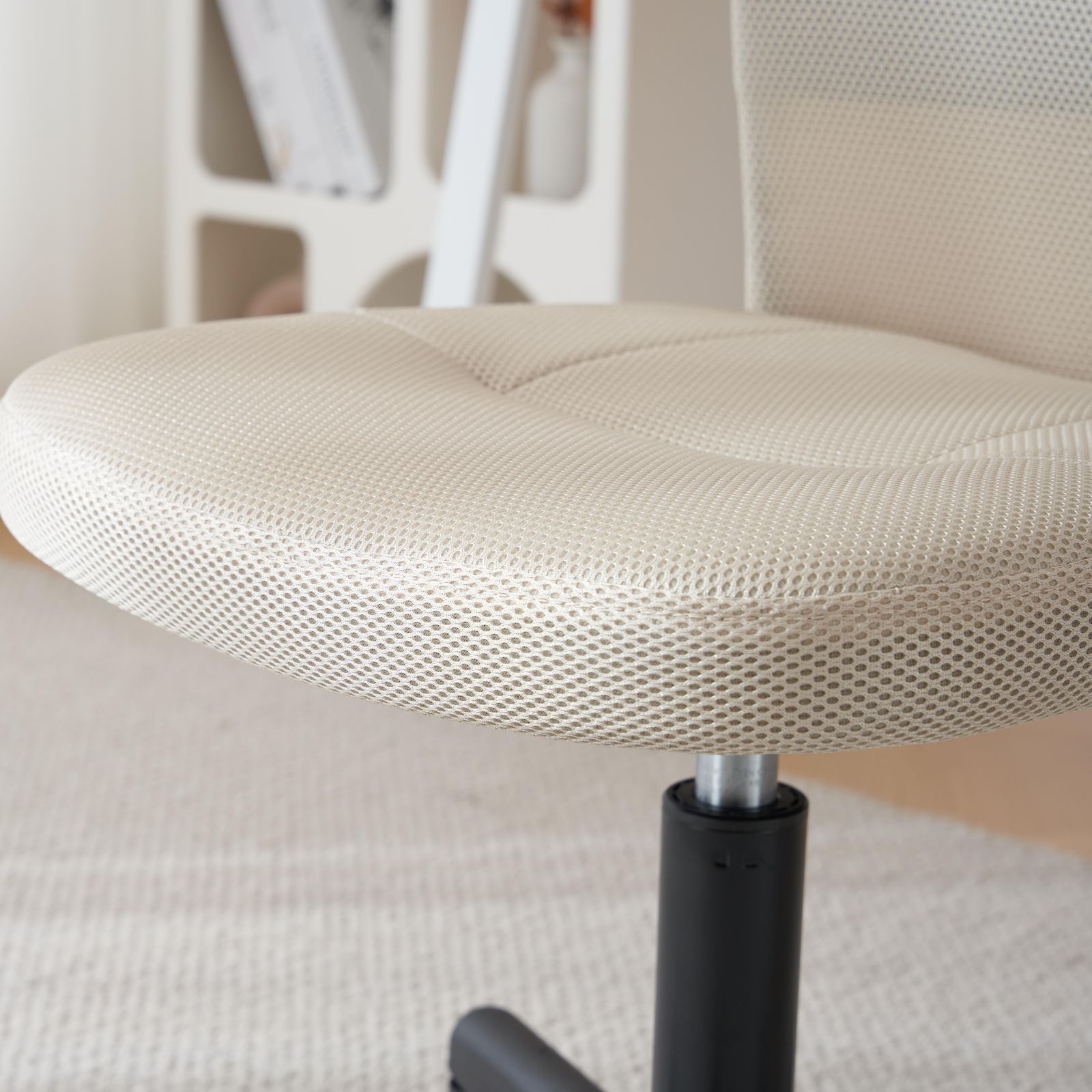 ・6.背中もお尻も程よく支える背もたれ、座面を包む高弾力素材が、体をふんわり優しく受け止めます。スポット包み込まれるような感覚で、長時間のデスク作業も対応です。 7.360度回転座面立ち上がらなくても手が届く。