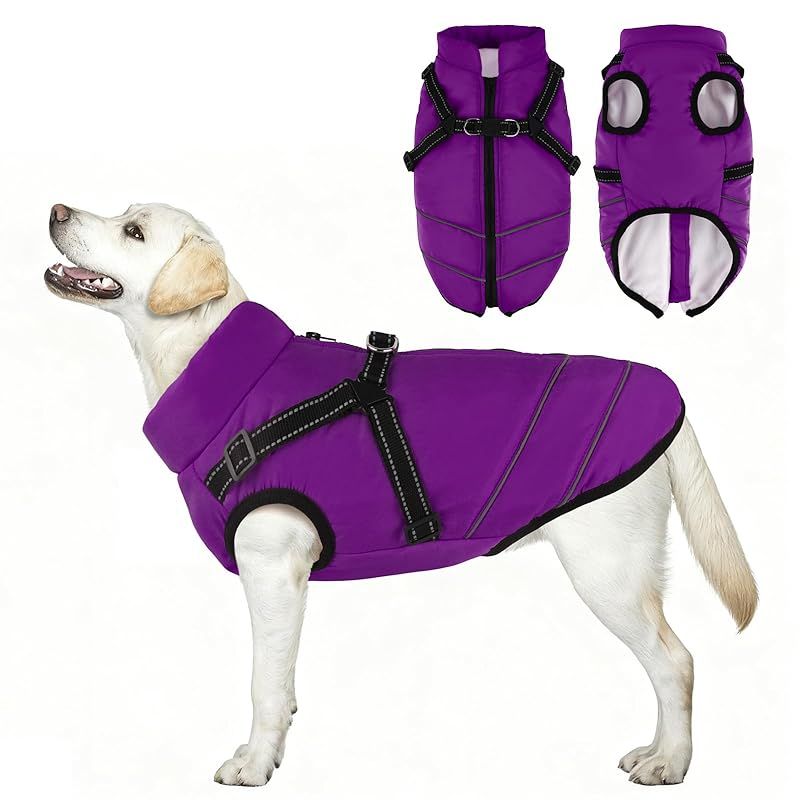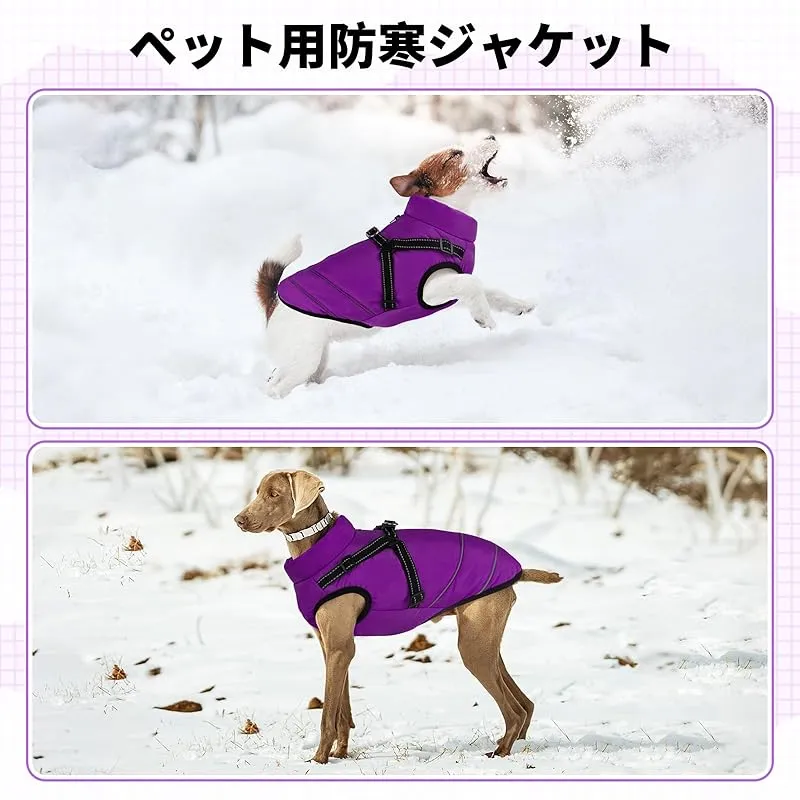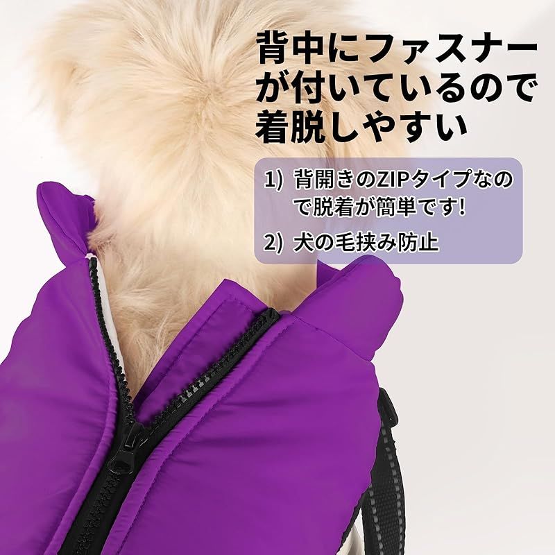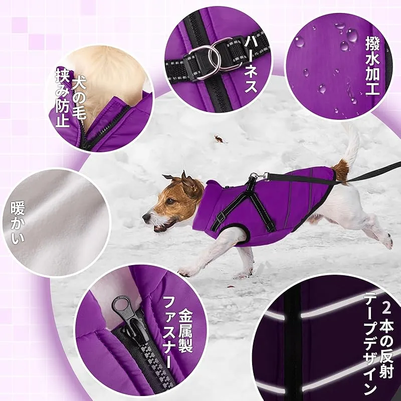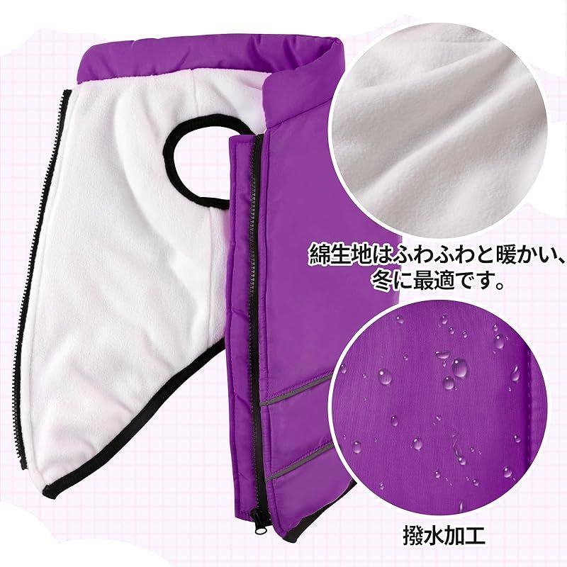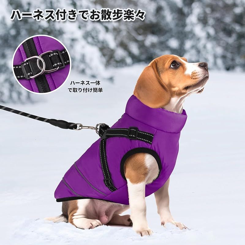 【新品】 Koramaku 犬服 綿服コート 一体型綿コート 反射テープデザイン ハーネス付き 背中開き おしゃれ 牽引 夜間反射 暖かい ペット 猫 犬 服 冬 小型犬 中型犬 着脱簡単 裏起毛 ベスト 防寒 防水 撥水 ジャケットリードリングあり お散歩( 製造元:Koramaku 商品番号:WC20004 商品内容:2XL 色:Purple