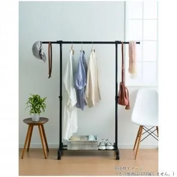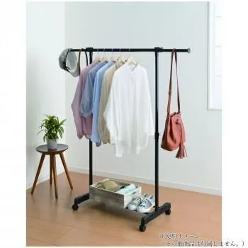 吊り下げ収納でシワになりにくい。キャスター付で移動が楽に行えます。玄関先ではアウター掛けに、リビングで衣類を掛けてワードローブのように収納できます。