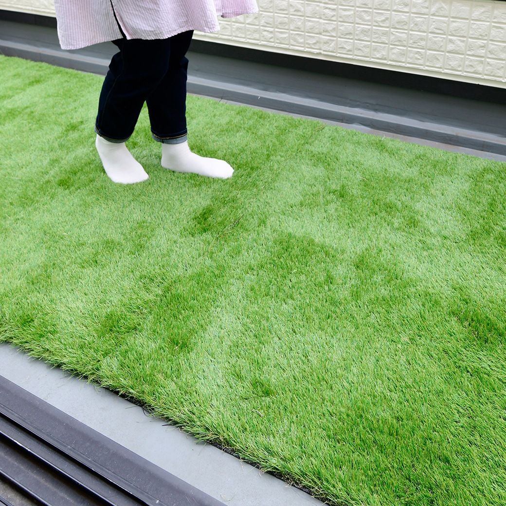 見た目のリアルさに加え、芝の抜けにくさや水はけの良さを追求した高機能仕様です。広げて敷くだけで、お子様やペットが思い切り走り回れる、ふかふかの緑の空間が手に入ります。