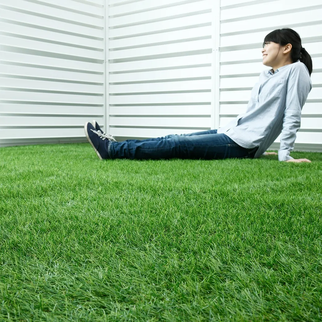 天然芝のような見た目と質感、ワンランク上の上質人工芝。面倒な草むしりや水やりから解放され、一年中美しい緑のお庭を楽しめます。