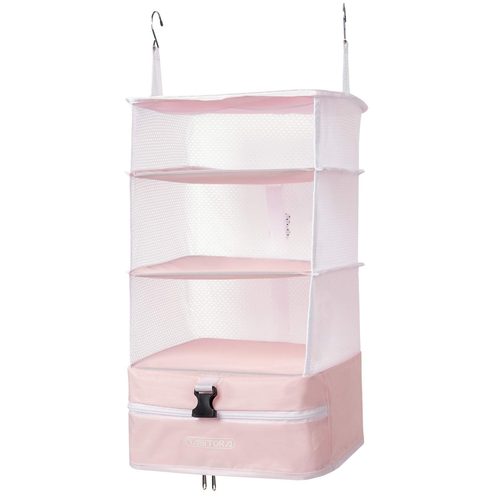 クローゼット吊り下げ収納 インナーバッグ 衣類ラック 収納 旅行 出張 クローゼット 収納ボックス 吊り下げ 省スペース 大容量 衣装ケース 4段 取付簡単 折り畳み式 (ピンク Large)