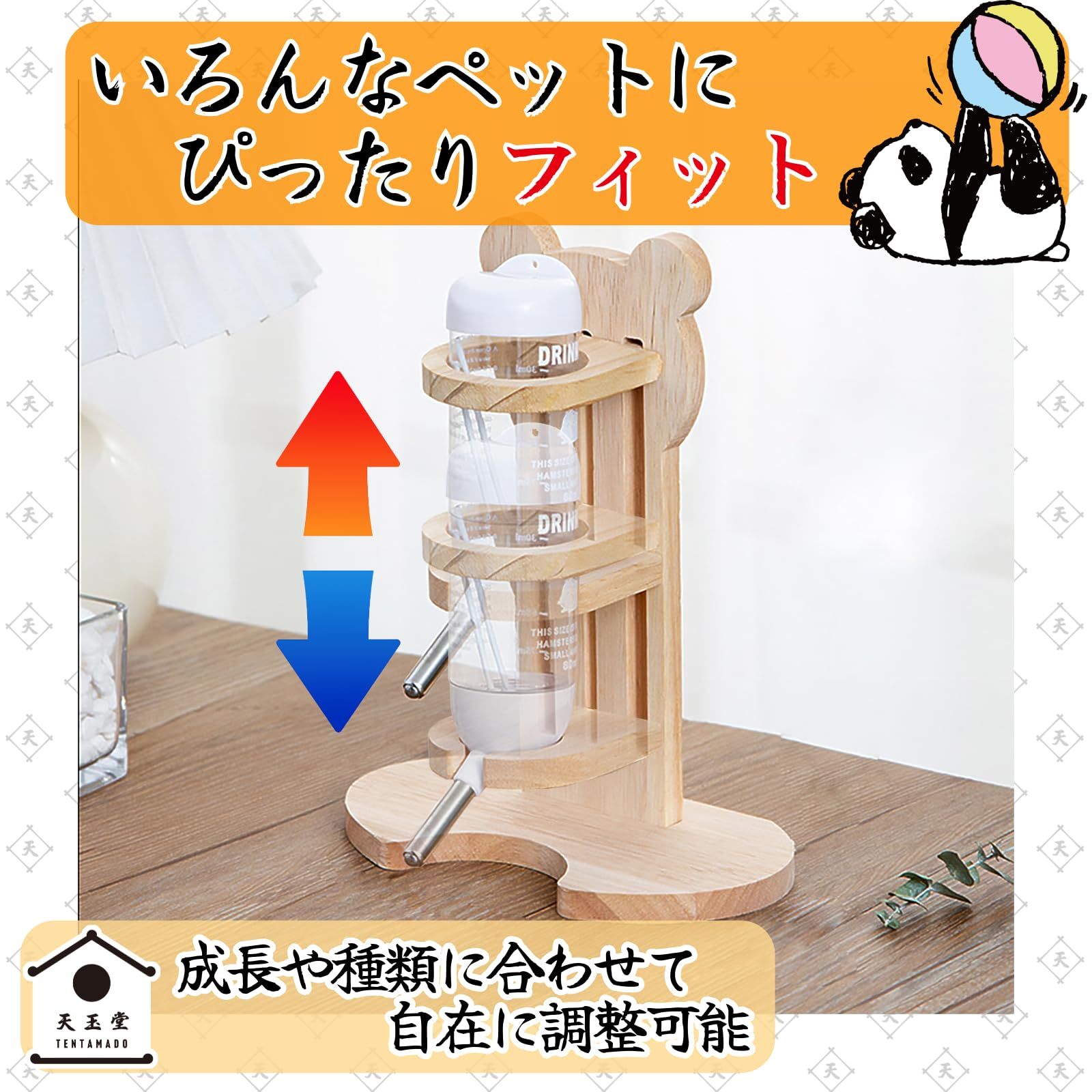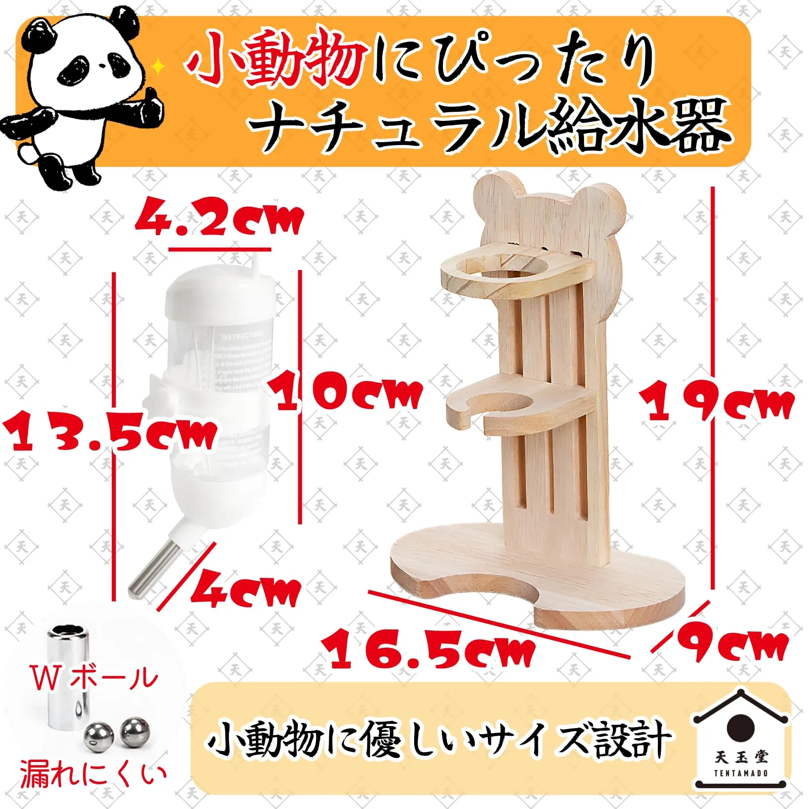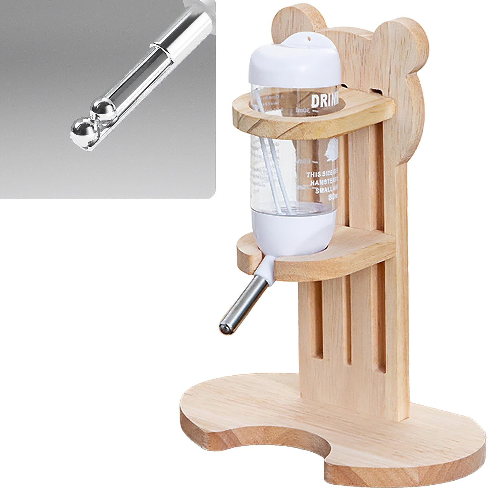 天玉堂 小動物用 給水器 置き型 木製 水飲み 高さ調節対応 ハムスター 給水ボトル 80ml 白