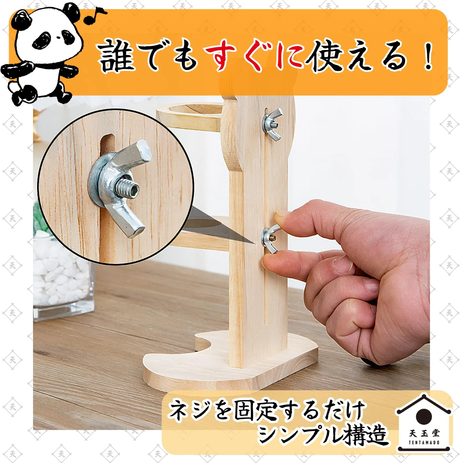 【簡単組み立て】工具不要で、背面ネジを固定するだけのシンプルな設計。初めての飼育者でも手軽に扱えます。 ハムスターやチンチラ、リスなどの小動物にぴったりの置き型給水器です。自然な木の風合いが安心感を与え、ケージ内の雰囲気にも馴染みます。給水ボトルの高さは調整可能で、ペットの成長や種類に応じて最適な位置にセットできます。スタンド式のしっかりとした構造により、水をこぼす心配が少なく、ケージ内を清潔に保てます。高品質な松の木を使用しており、かじり癖のある小動物にも安心。工具不要で、背面ネジを固定するだけで簡単に組み立て可能なため、初心者の方でもすぐにお使いいただけます。