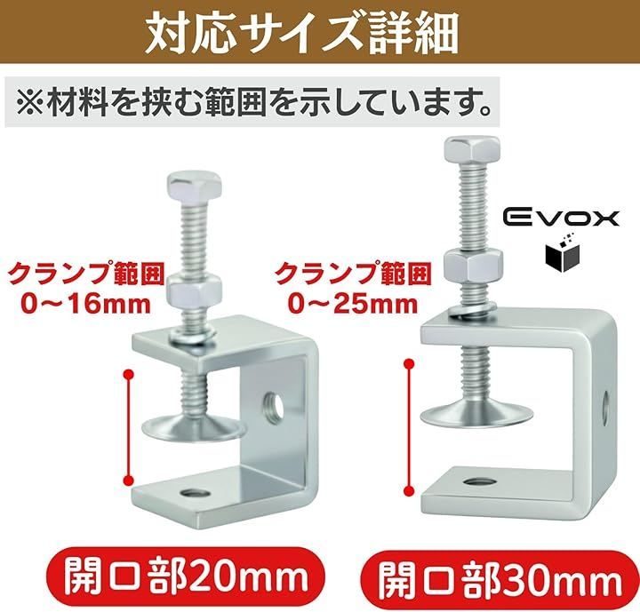 EVOX クランプ 工具 C型クランプ 4個セット 小型 ミニクランプ cクランプ ステンレス 304ステンレス ステンレス鋼cクランプ 金具 DIY 金具開口クランプ 木工用 固定 溶接 作業 ズレ防止 安定感 調節可能な (開口部20mm)