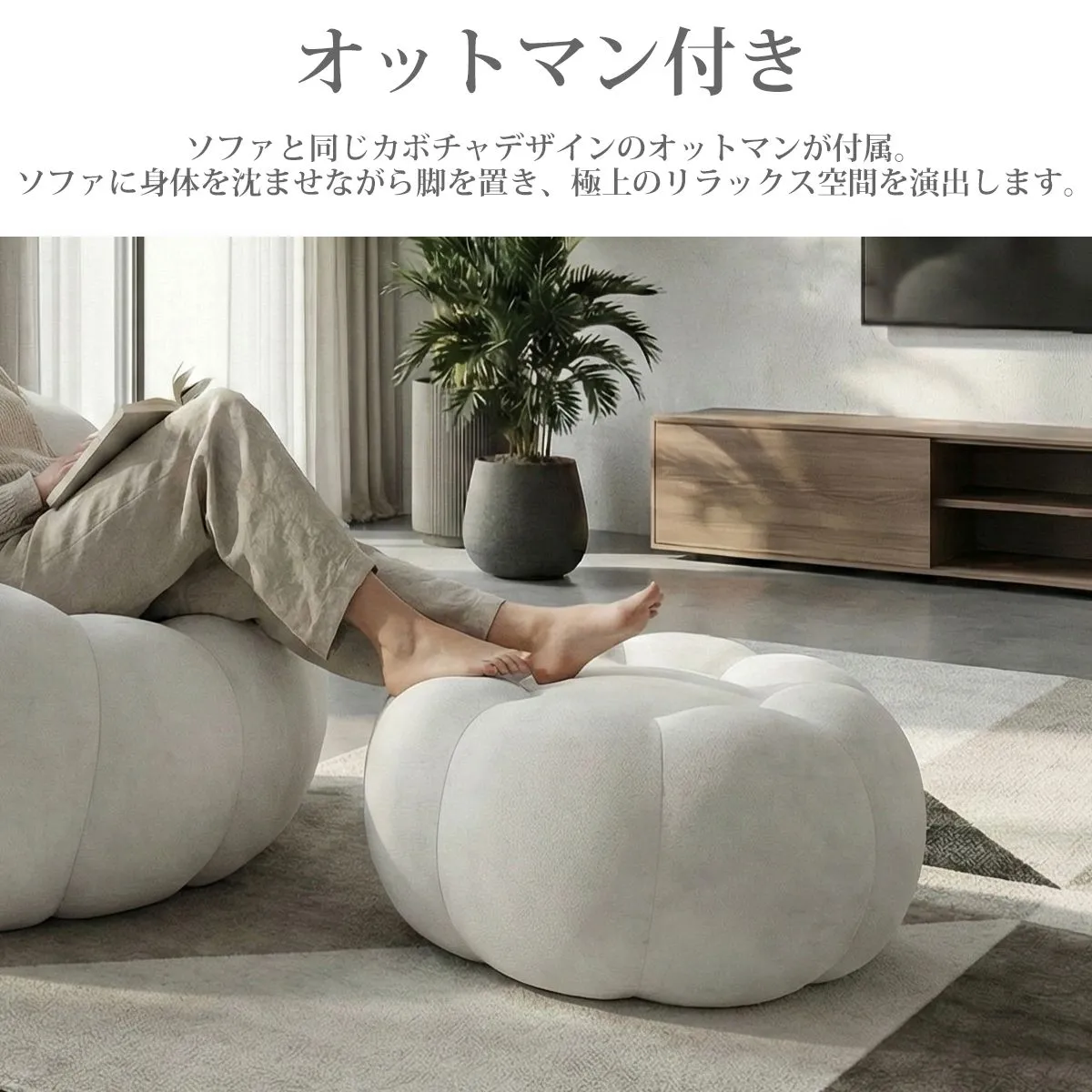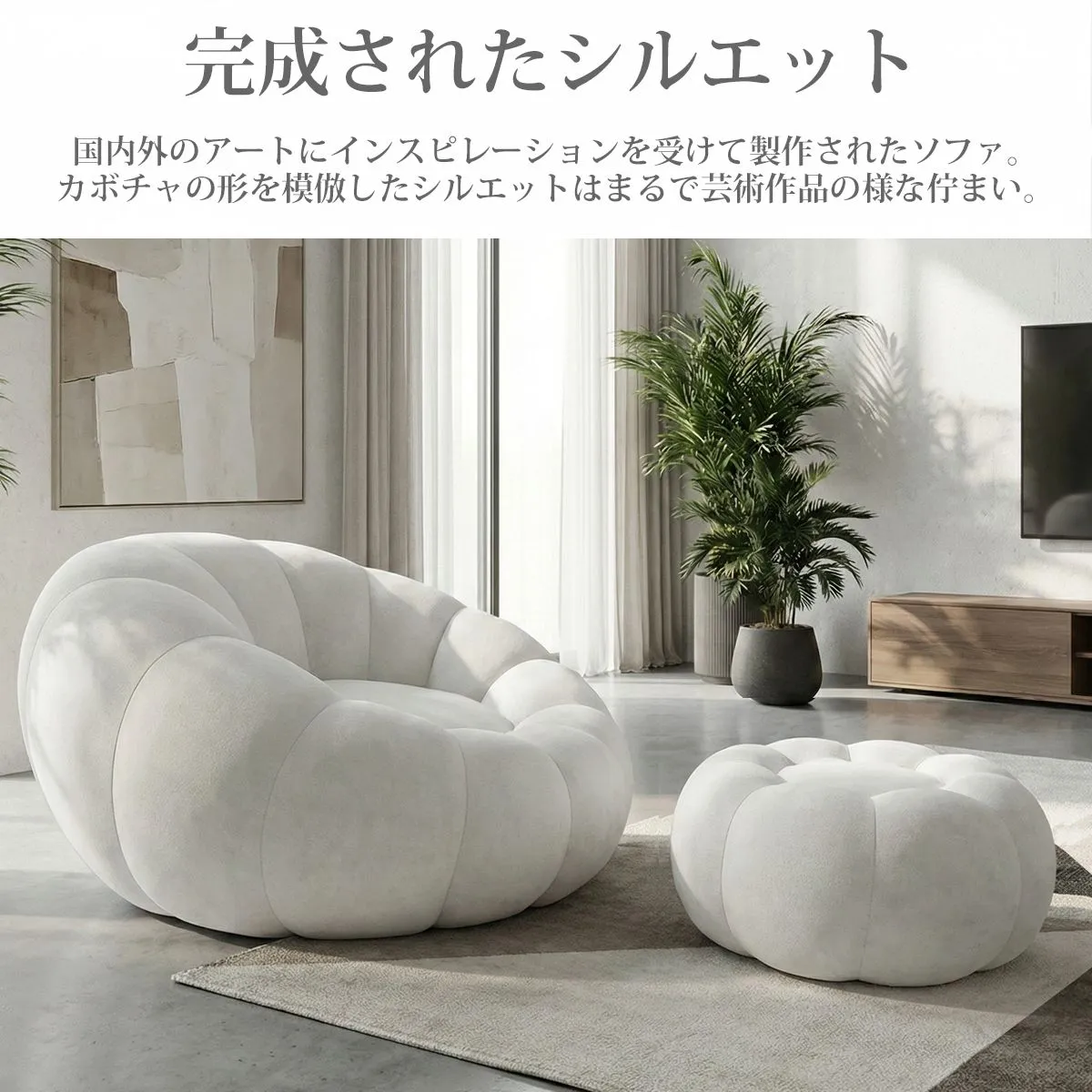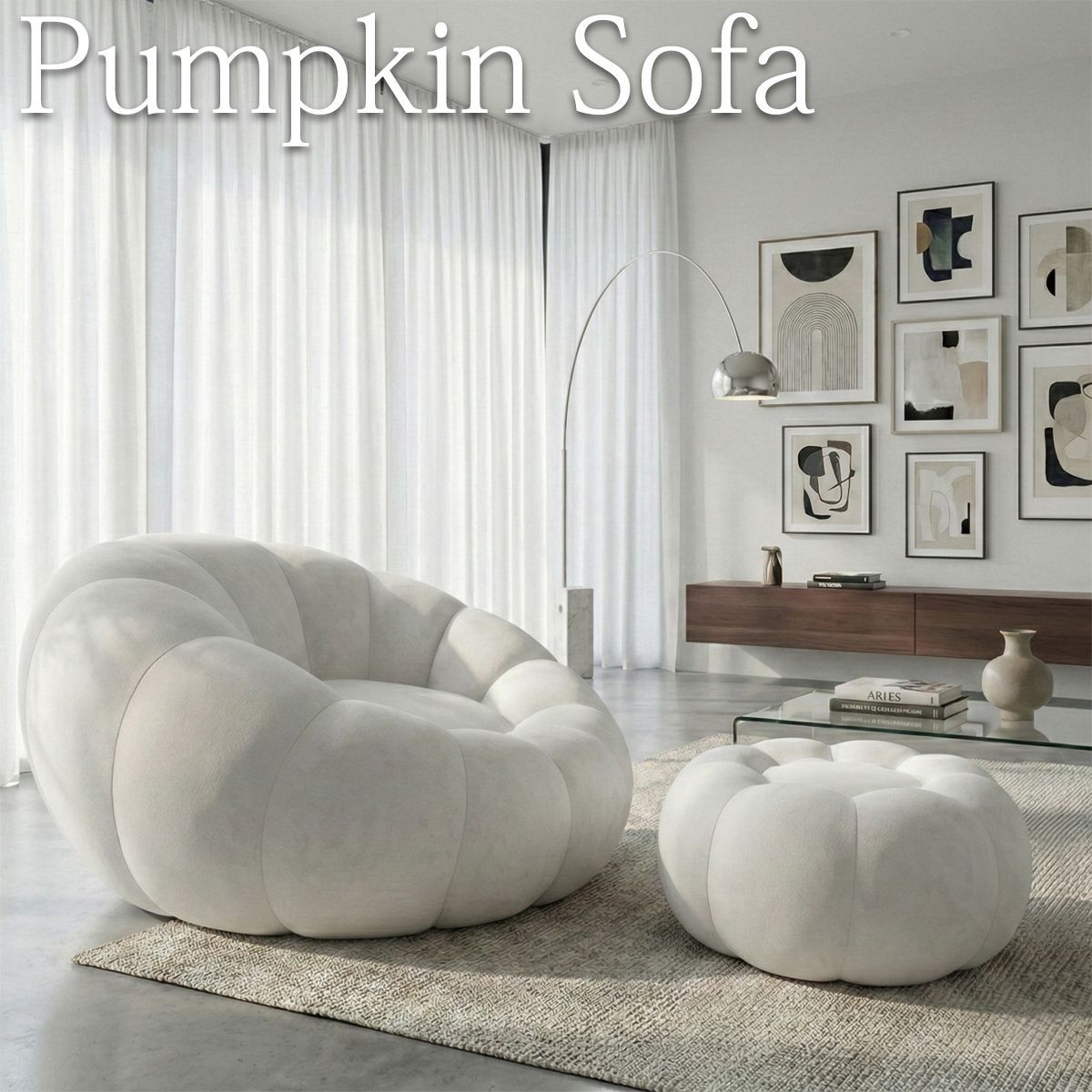 かぼちゃをモチーフにしたユニークなデザインのソファ。