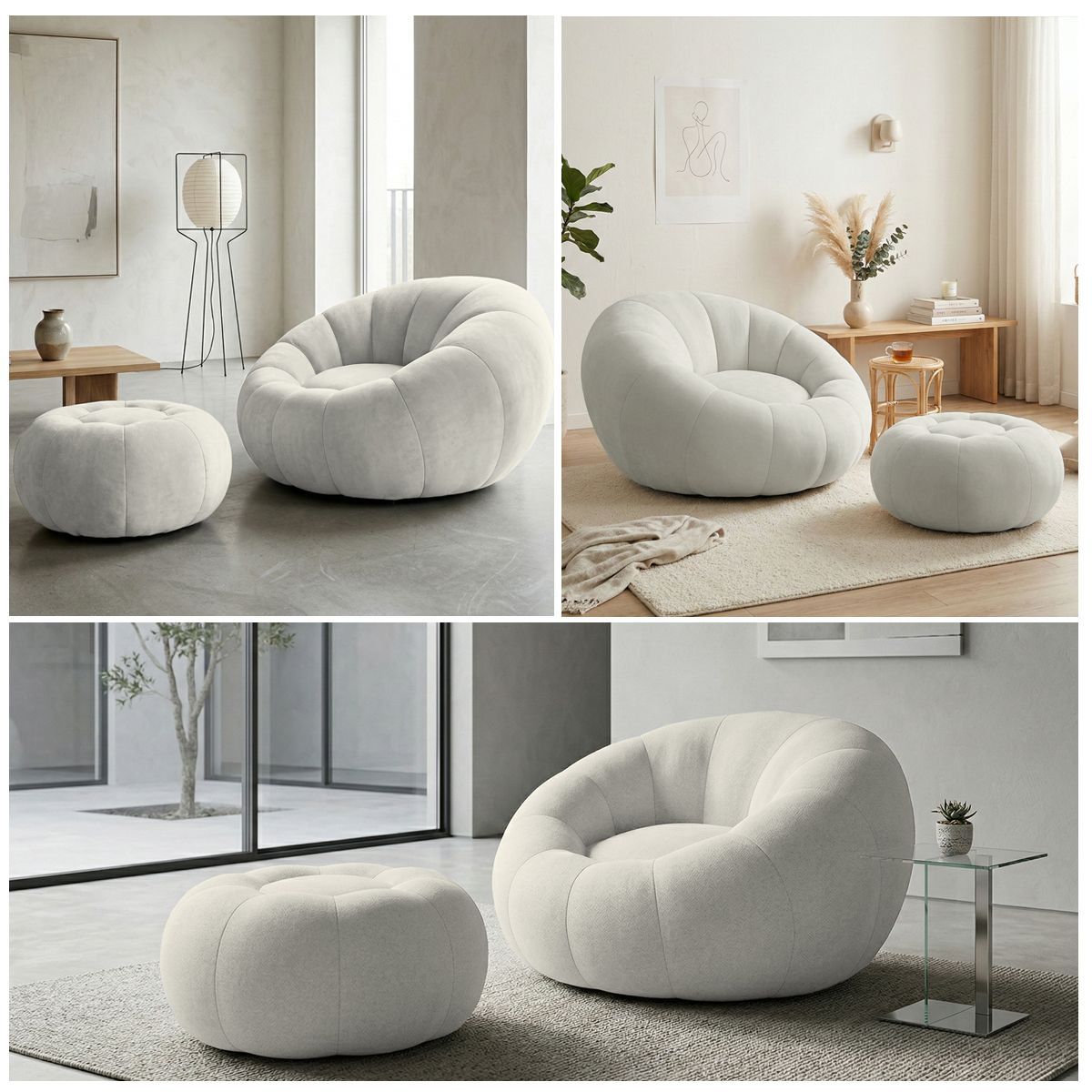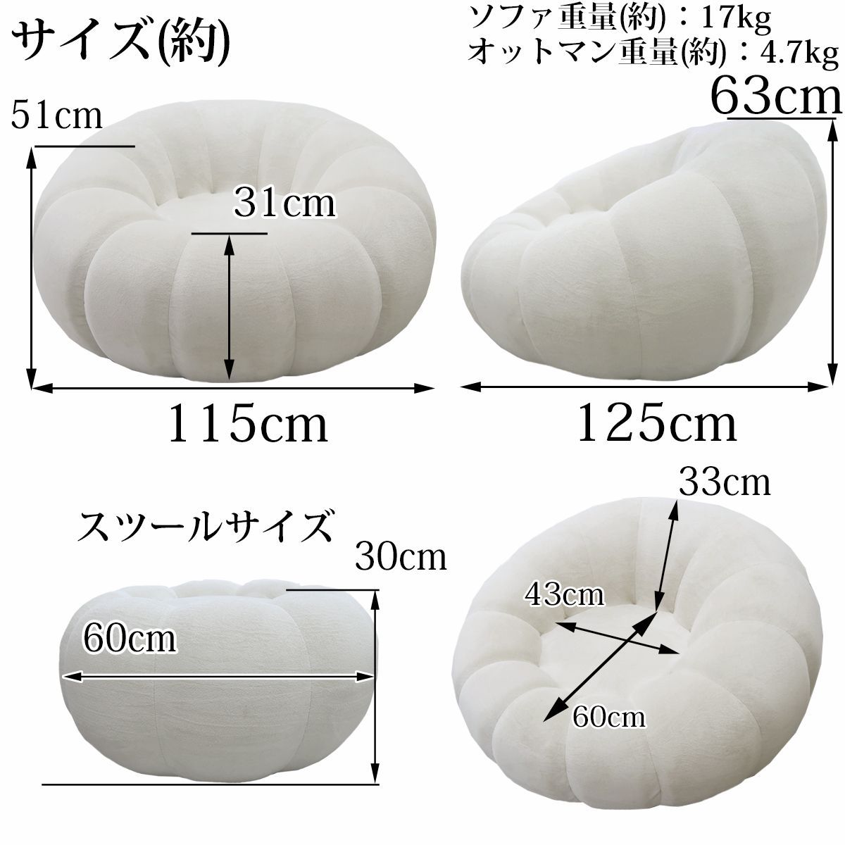 ■サイズ(約) ソファ:幅115cm*奥行き125cm*高さ63cm*座面高31cm オットマン:直径60cm*高さ30cm