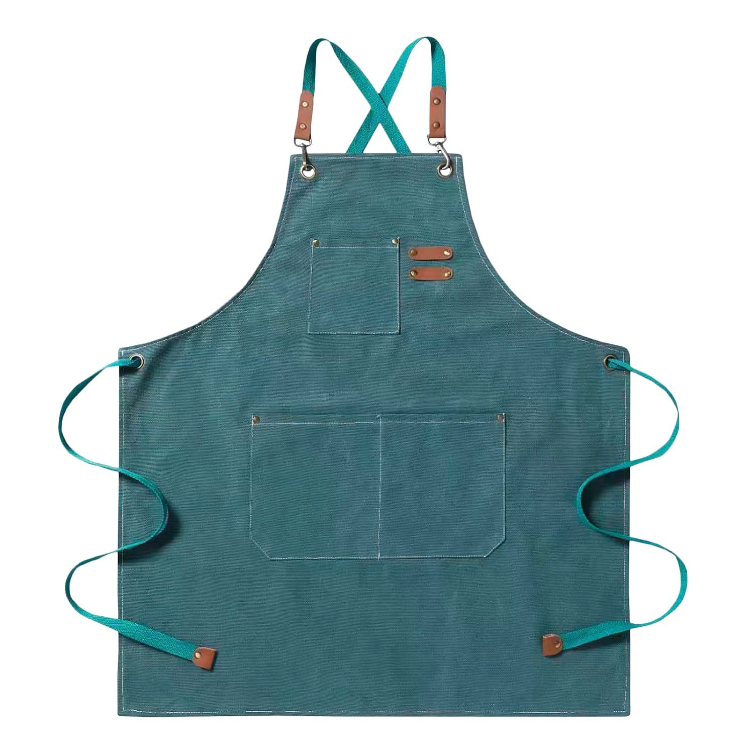 [KOMORE] エプロン アウトドア キャンプ 厚手 作業用 メンズ レディース おしゃれ デニム カフェ風 かぶるだけ (エメラルドグリーン) [エメラルドグリーン]