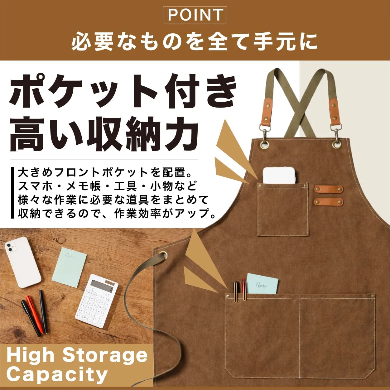 【使用シチュエーション】 センスよくおしゃれなデザイン。日常の家事はもちろん、調理・カフェ・工房作業・DIY・フラワーショップなど、性別や年齢に関係なく幅広いシーンで活躍します。