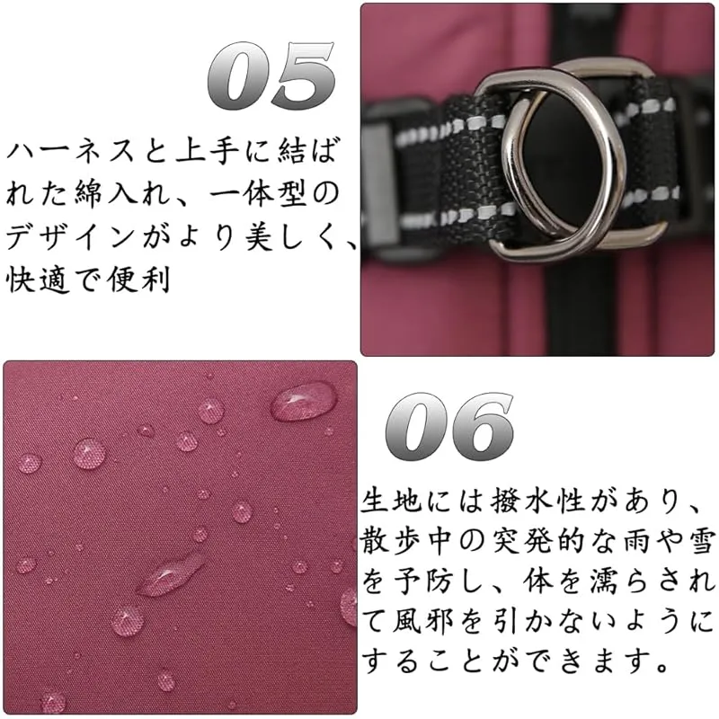 【商品概要】 複数の色選べる、きれいで暖かく、ペットの体を保護しています。 上質な防水生地を厳選し、雨の日も心配なし。 ハーネスと上手に結ばれた綿入れ、一体型のデザインがより美しく、快適で便利。 ファスナー式のデザインで着脱が楽に簡単になるので、ペット連れでお出かけしましょう。 適用ペット:猫、小型犬、中型犬に適用する。