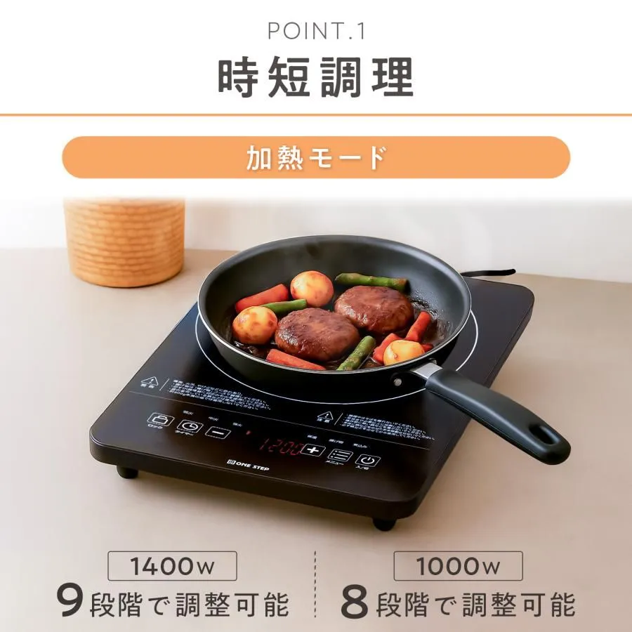 ■パワフルな加熱性能 最大1000Wの高火力で、炒め物や煮込み料理など幅広い調理に対応します。 スピーディーに加熱でき、日々の料理を快適にサポートします。