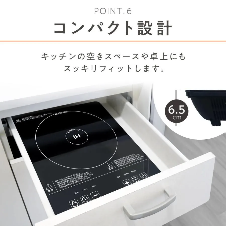 コンパクトながら高性能で、手軽に使える1口IHクッキングヒーターです。