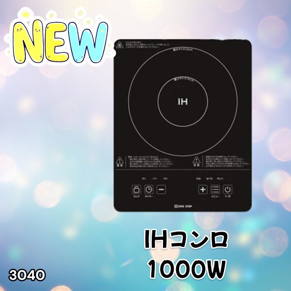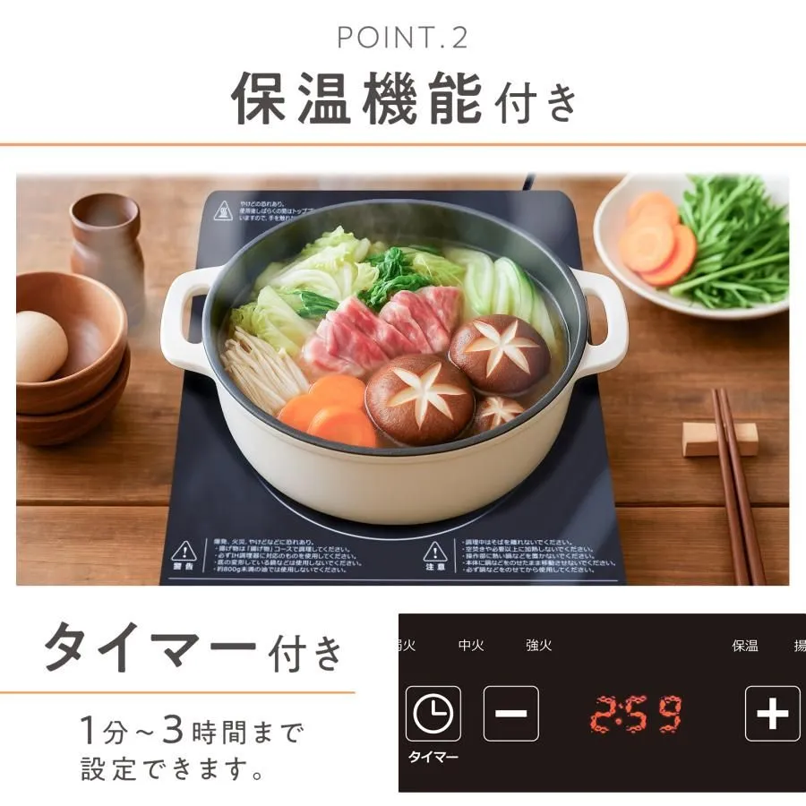 #3040 IH 卓上 コンロ クッキングヒーター 1000W 液晶付き 火力調整 8段階 調理 高火力 鍋 料理 保温機能 タイマー付き 省エネ 簡単操作 コンパクト 小型 軽量 ※一部地域離島別途配送料有