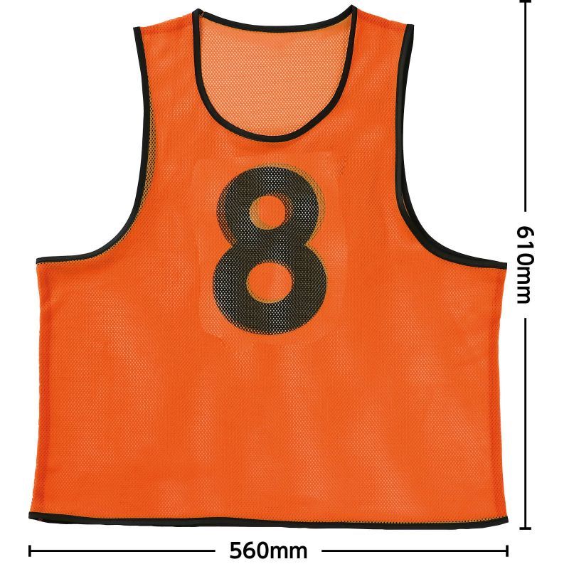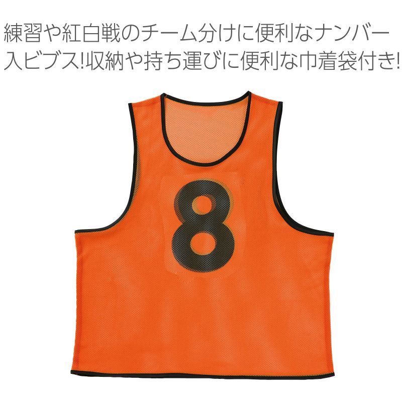 ■完成サイズ:Fサイズ(身丈:約610mm、身幅:約560mm) チーム分けに便利なナンバー入りビブス10枚セットです。両面に1~10の番号が入っており、視認性の高いカラーで遠くからでも識別しやすく、体育祭やスポーツイベント、部活動の紅白戦などに便利です。フリーサイズで幅広い方に着用でき、収納や持ち運びに便利な巾着袋付きで管理もしやすい仕様です。 ※お使いのモニター設定、お部屋の照明等により実際の商品と色味が異なる場合がございます