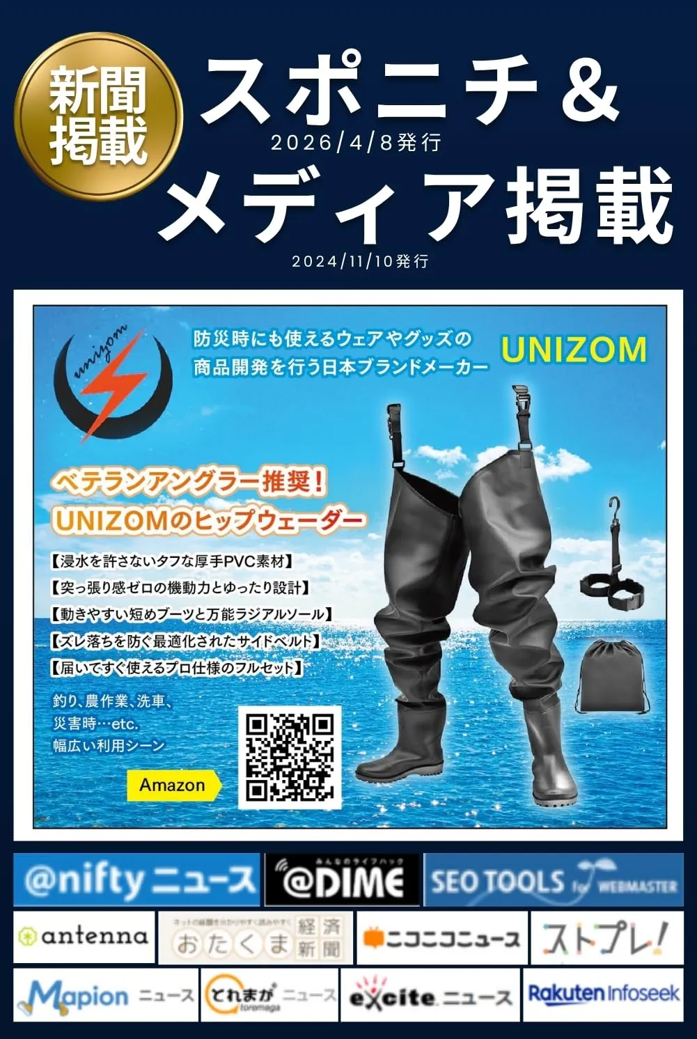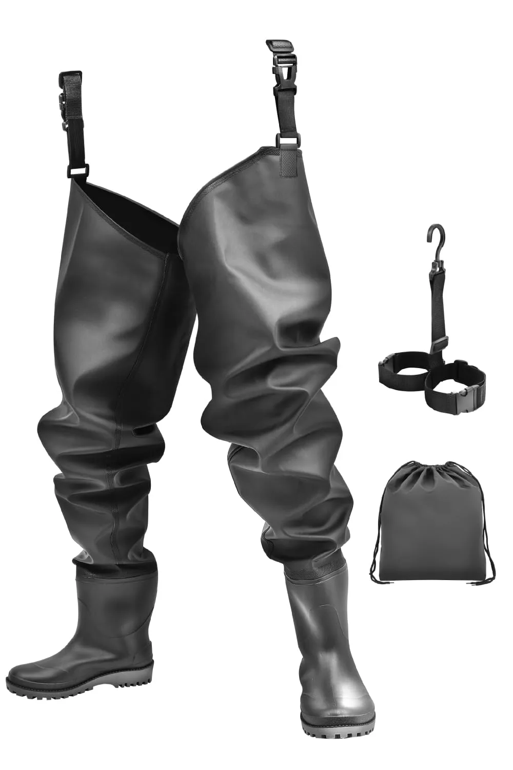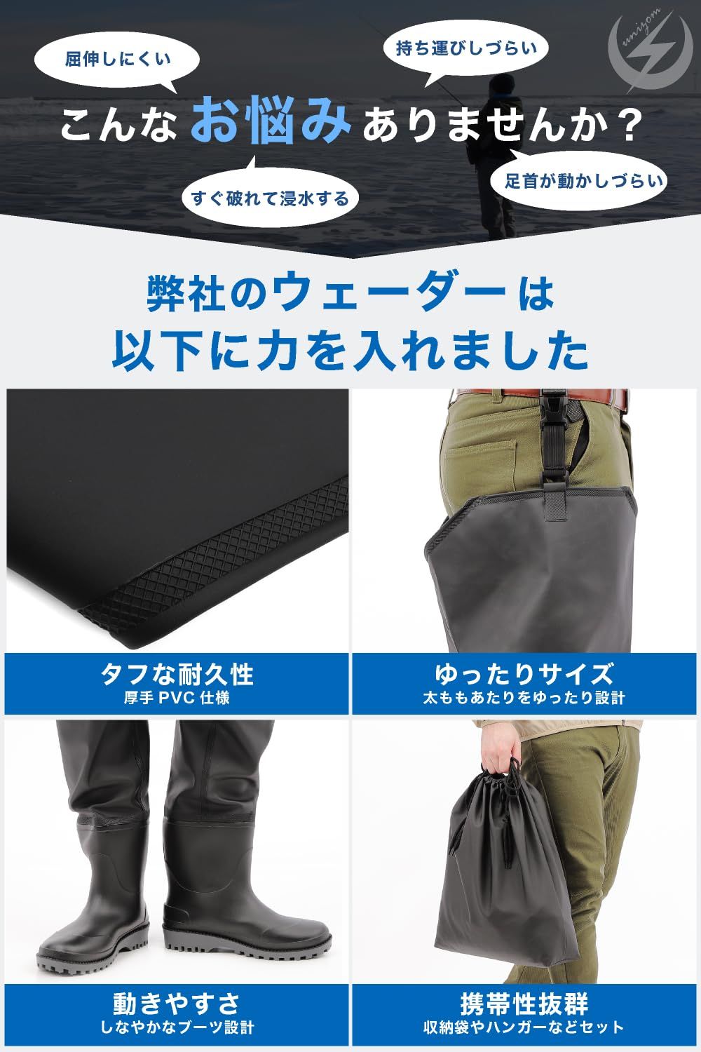 [unizom] ヒップウェーダー 釣り ウェーダー 【ベテランアングラー推奨】 動きやすい 突っ張り感ゼロ 厚手PVC 胴長 長靴 農作業 洗車 完全防水 ラジアルソール ハンガー 収納袋付 フルセット (27.5cm~28cm) [27.5cm~28cm]