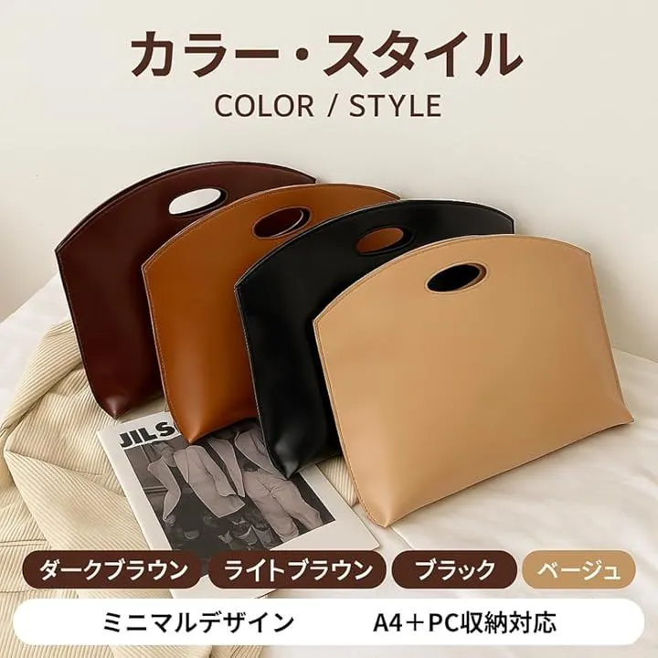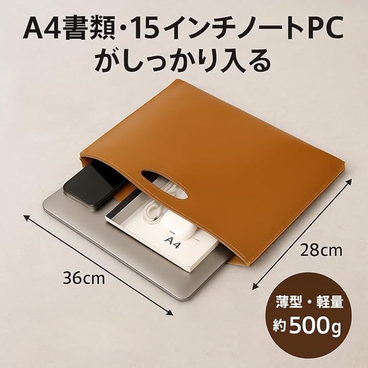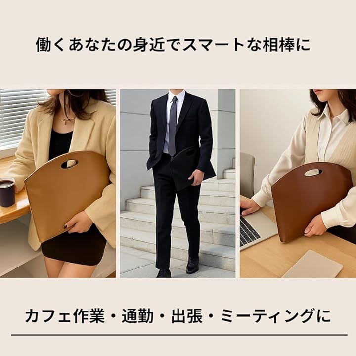 ビジネスシーンやカフェ作業などでA4資料とPCを同時に持ち歩け、外出時の荷物をすっきりまとめられる設計です。